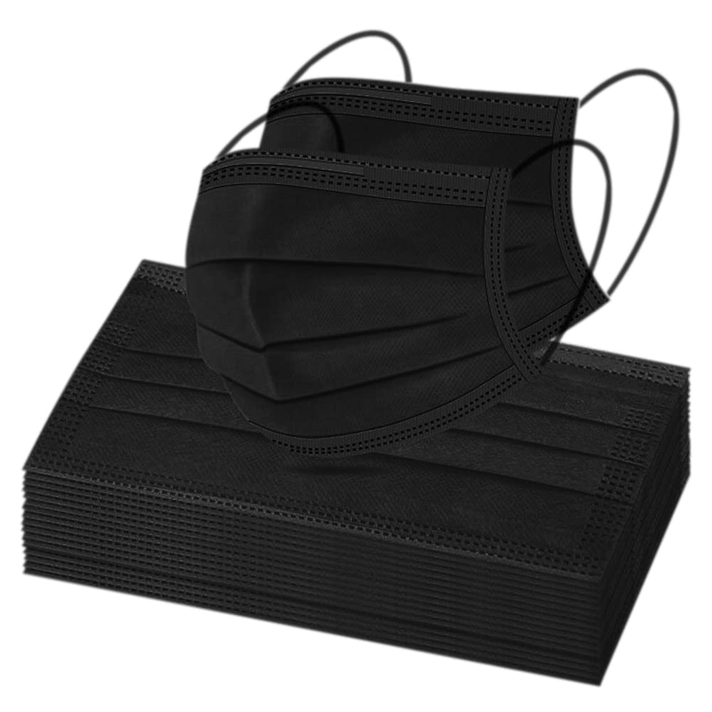100pcs Adult Black Disposable Face Masks 3 Layer Non-Woven Masks with Soft Elastic Earloop
