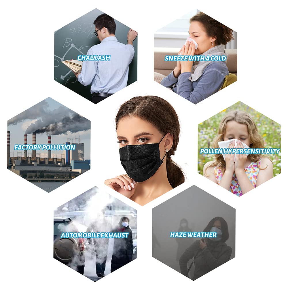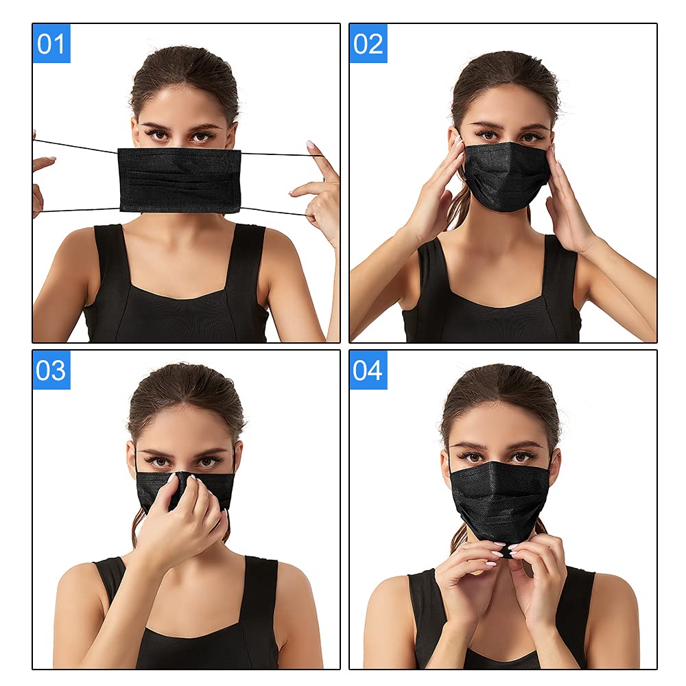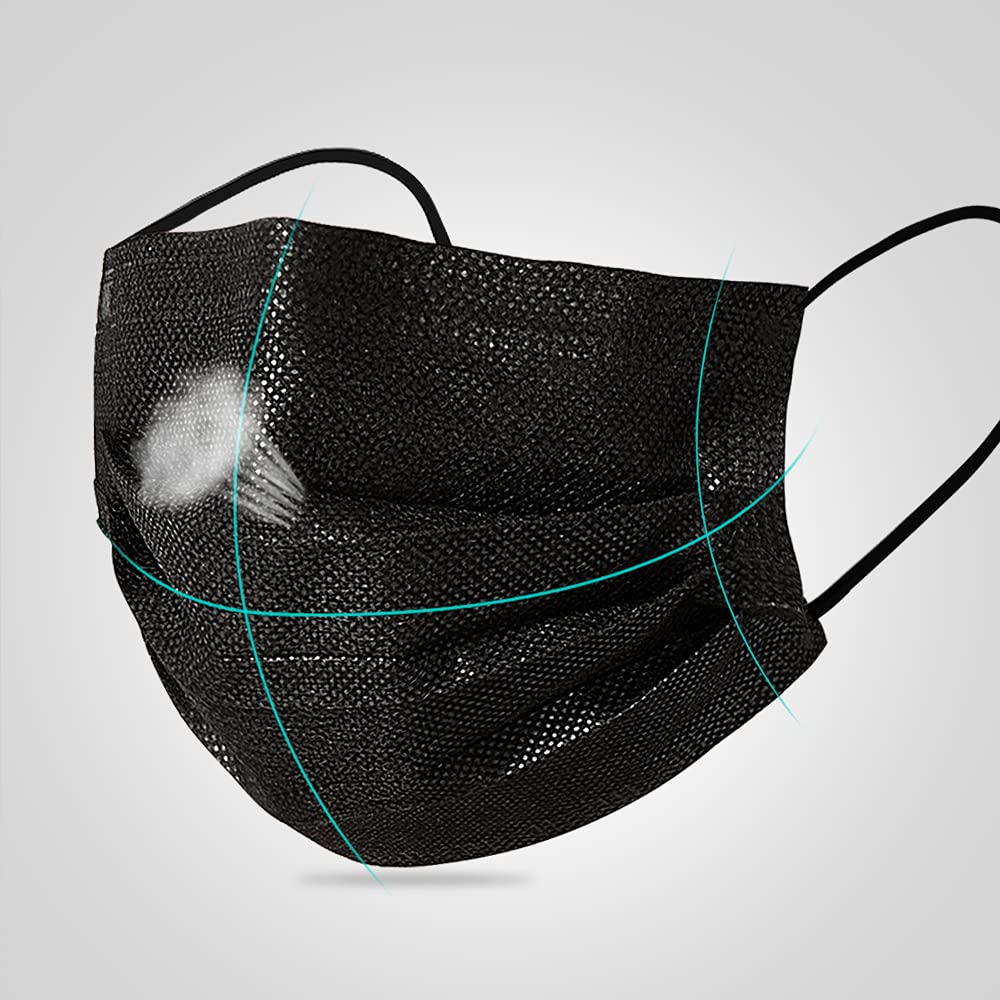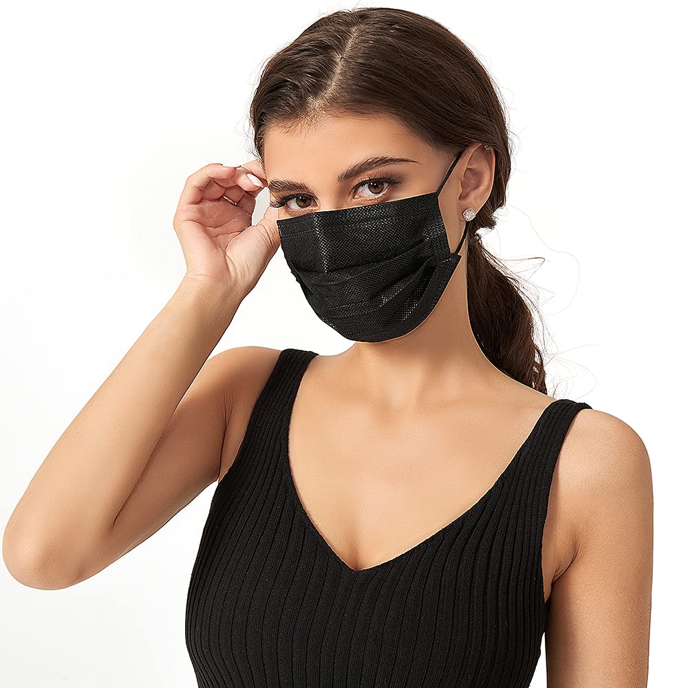 100PCS Black Disposable Face Mask 3 Ply Filter Protection Breathable Face Masks
