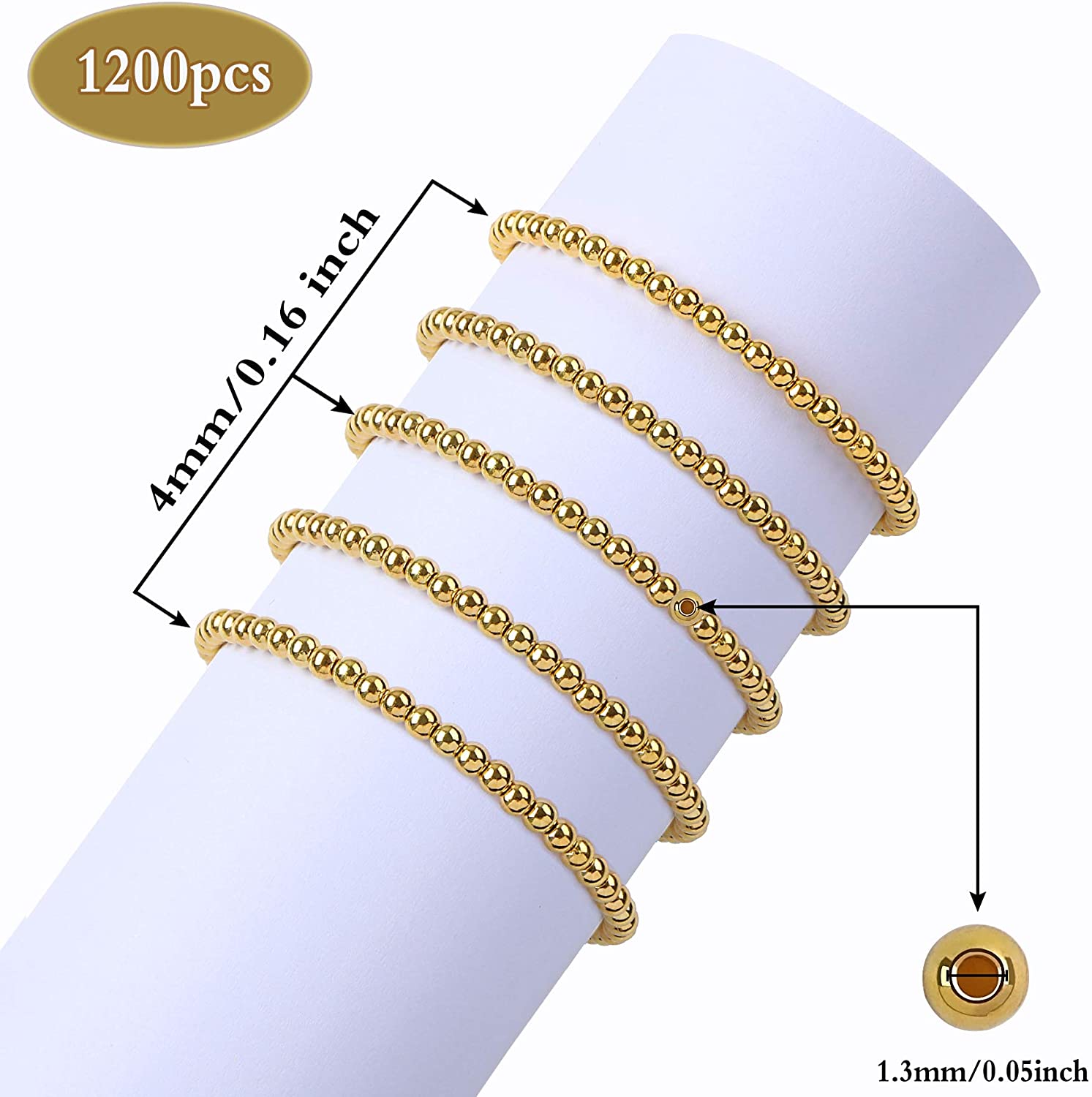 1200Pcs 4mm Smooth Round Beads Gold Spacer Loose Ball Beads for Bracelet Jewelry Making Craft