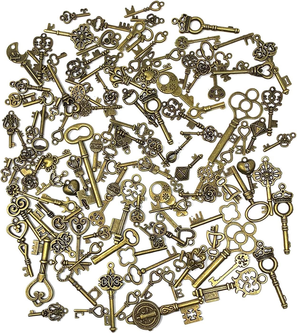 JIALEEY Mixed Set of 125 Skeleton Keys with Antique Style Bronze Brass Skeleton Castle Dungeon Pirate Keys for Birthday Party Favors, Mini Treasure Toy Gifts, Medieval Middle Ages Theme