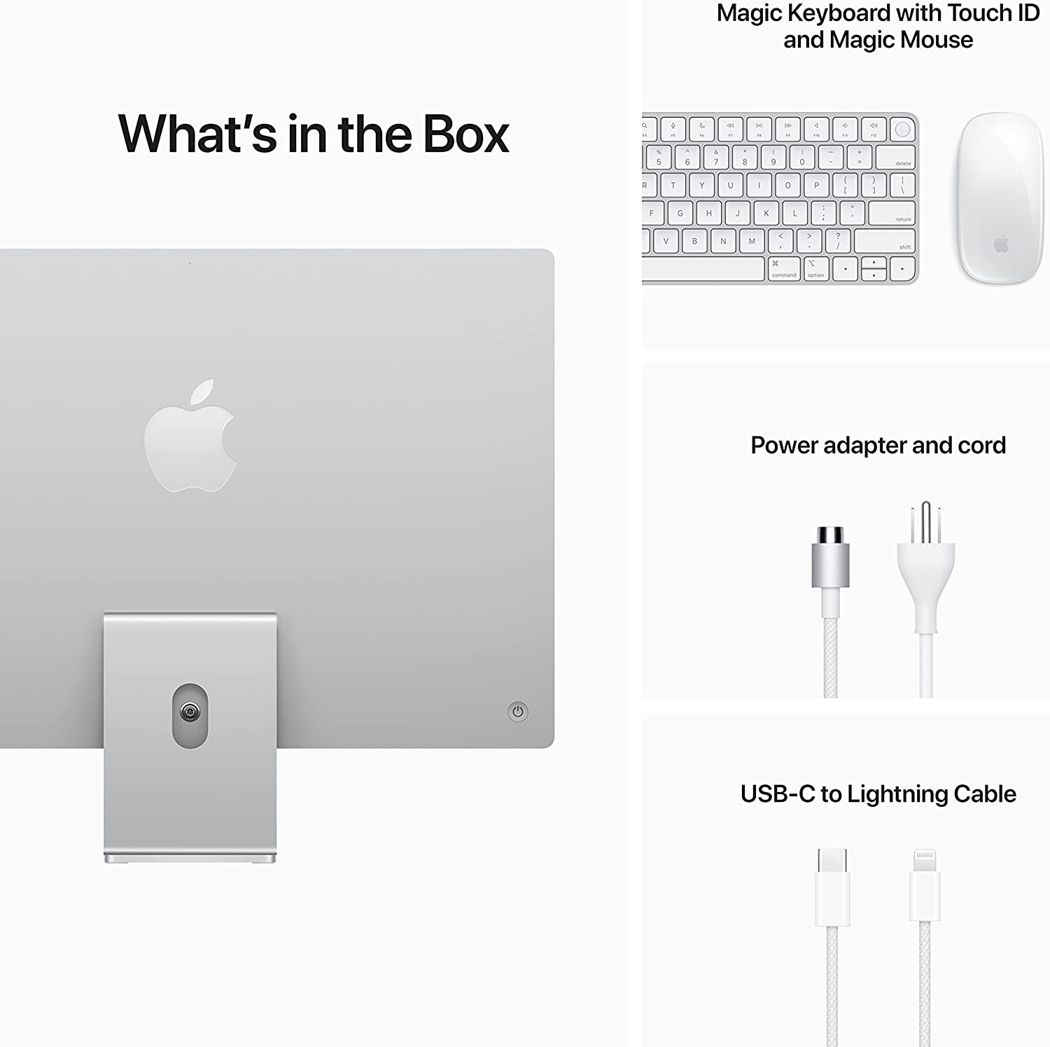 2021 Apple iMac (24-inch, Apple M1 chip with 8‑core CPU and 8‑core GPU, 8GB RAM, 256GB) - Silver