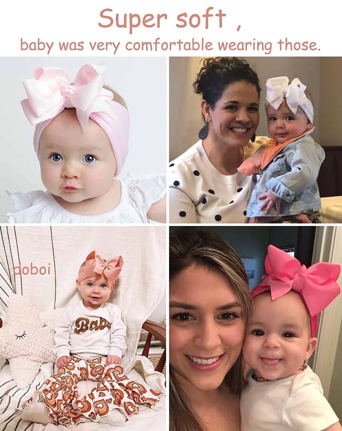 20pcs 6 Inches Baby Girls Big Bows Headbands Elastic Nylon Hairbands Turban Hair Accessories for Newborns Infants Toddlers and Kids