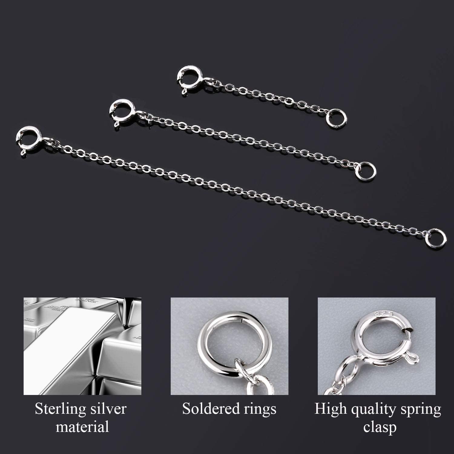 3 Pcs 925 Sterling Silver Necklace Extenders for Women Durable Strong Removable Necklace Bracelet Anklet Extension for Jewelry Making(1 2 3 Inch, Silver)