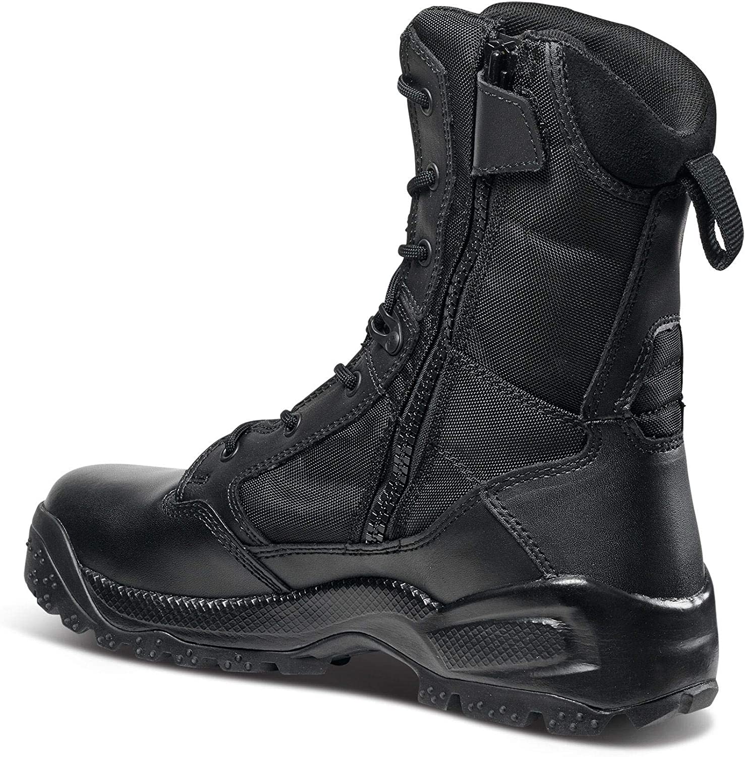 The boot worn by the world's leading public safety Personnel, the 5.11 A.T.A.C., just got promoted. It's lighter and more comfortable, yet maintains its reputation for toughness and durability. A new air flow tongue and full-length dual durometer ortholite footbed work to keep your feet cool, dry and comfortable all day, every day. Another new feature, The achilles heel flex zone, gives a critical part of your foot more range of motion without compromising support. The full-grain leather toe, 840D nylon upper and shock Mitigation System provide the kind of rugged protection you need; while the knife pocket keeps an important ally within reach.