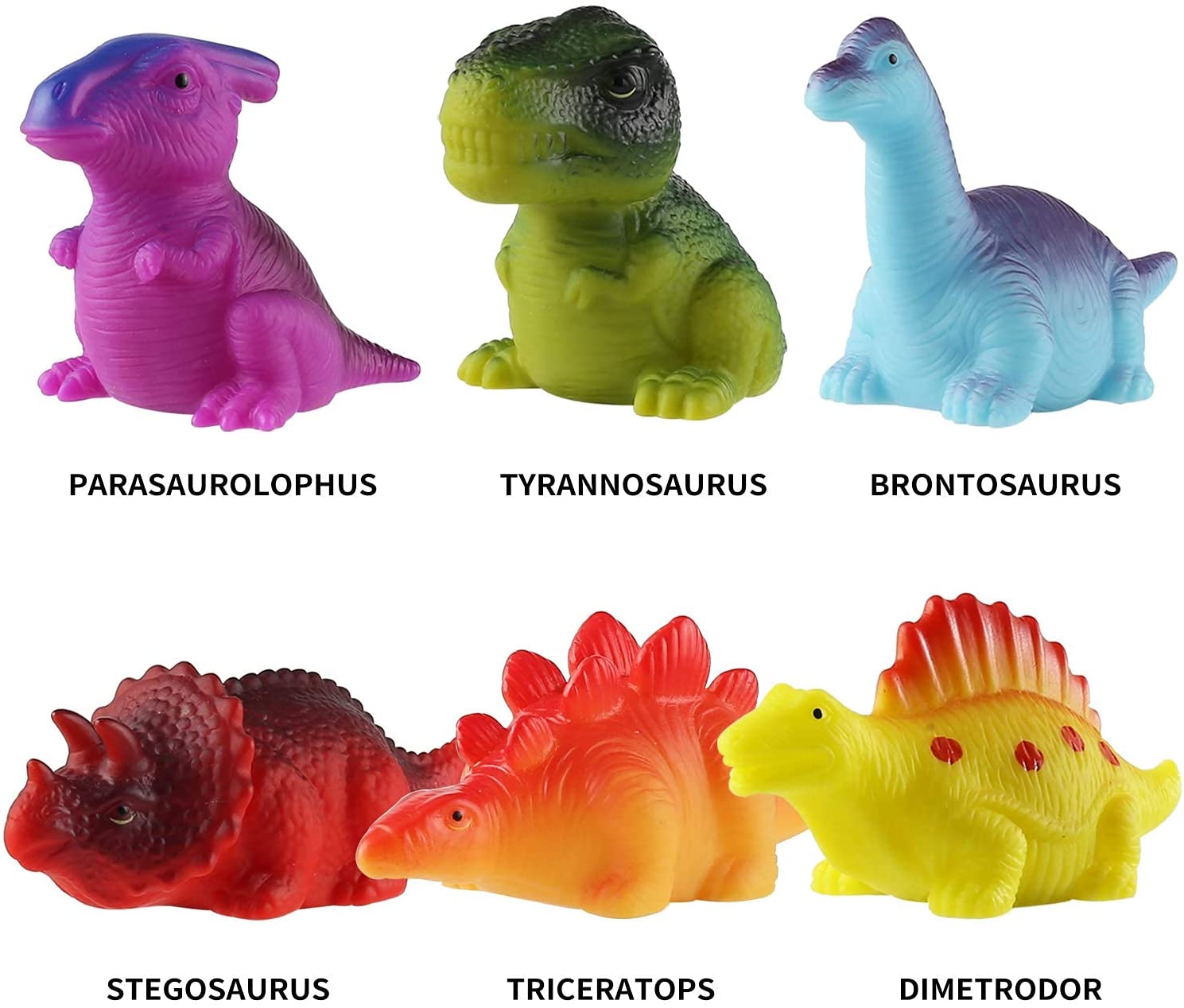 Six dinosaur toys accompany your child's bath time, so they can have more fun while taking a shower.