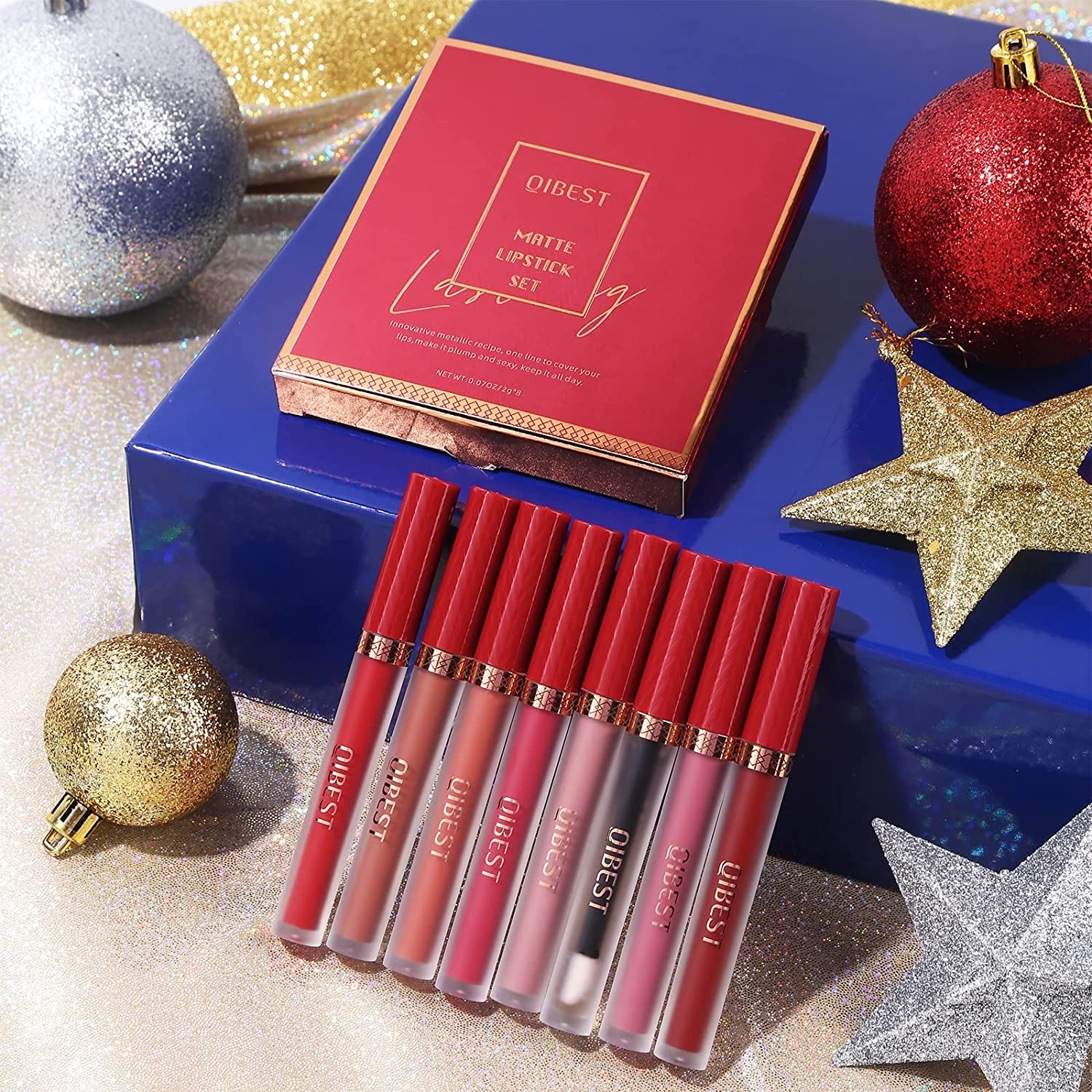 8pcs Matte Liquid Lipstick with Lip Plumper Makeup Set Velvety Long Lasting High Pigmented Nude Waterproof Lip Gloss Kit Girls Women Make Up Gift Set