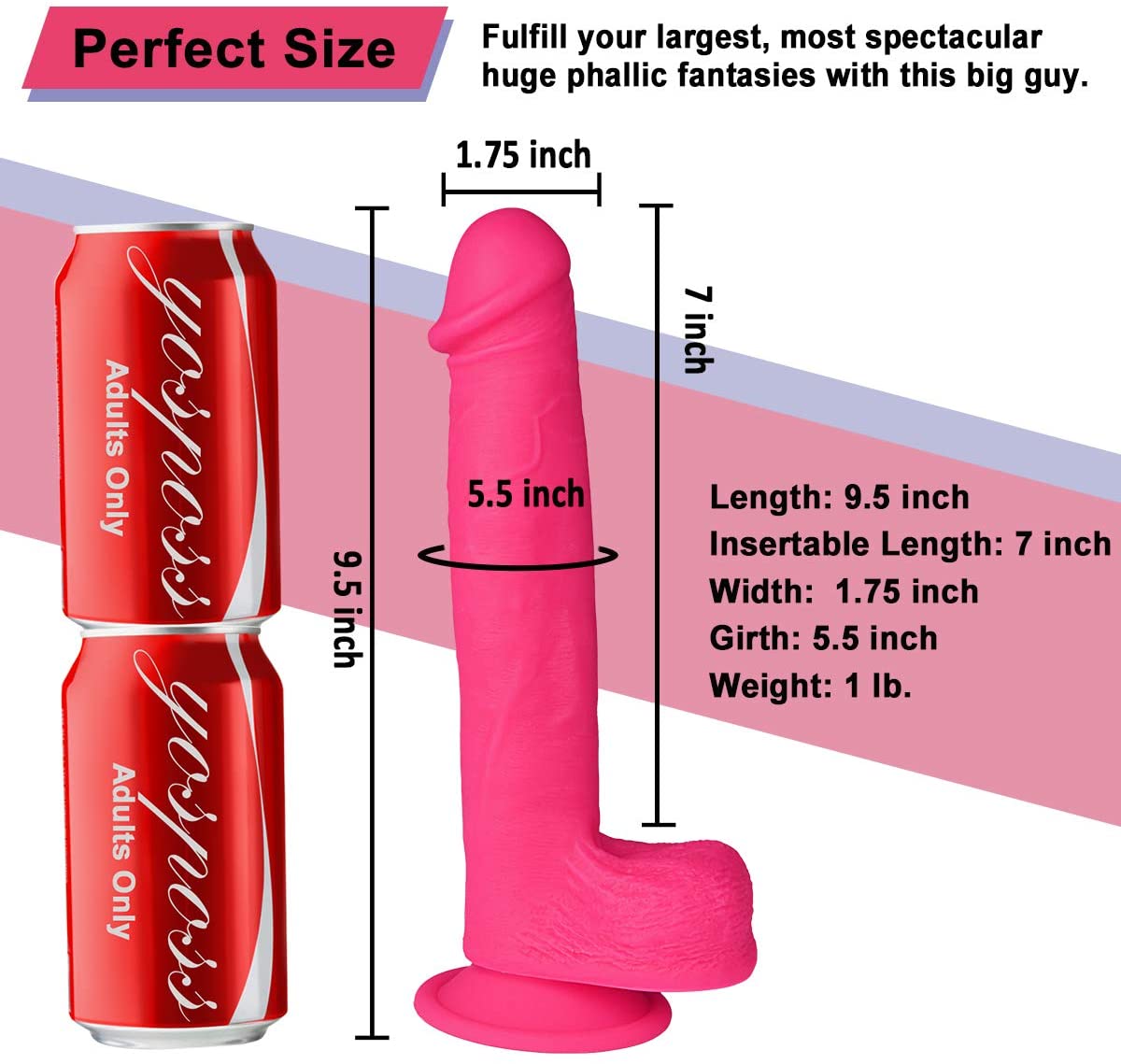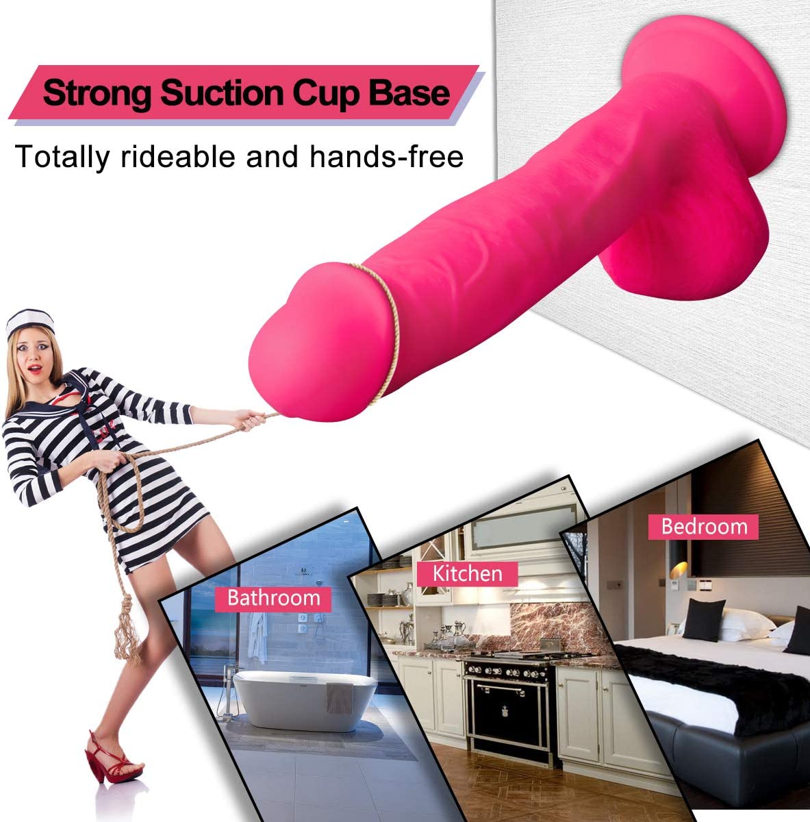 9.5 Inch Realistic Dildo, Dual Density Liquid Silicone Lifelike Penis with Strong Suction Cup for Hands-Free Play Flexible Cock Harness Strap-on Compatible Sex Toys for Vaginal and Anal Play (Pink)
