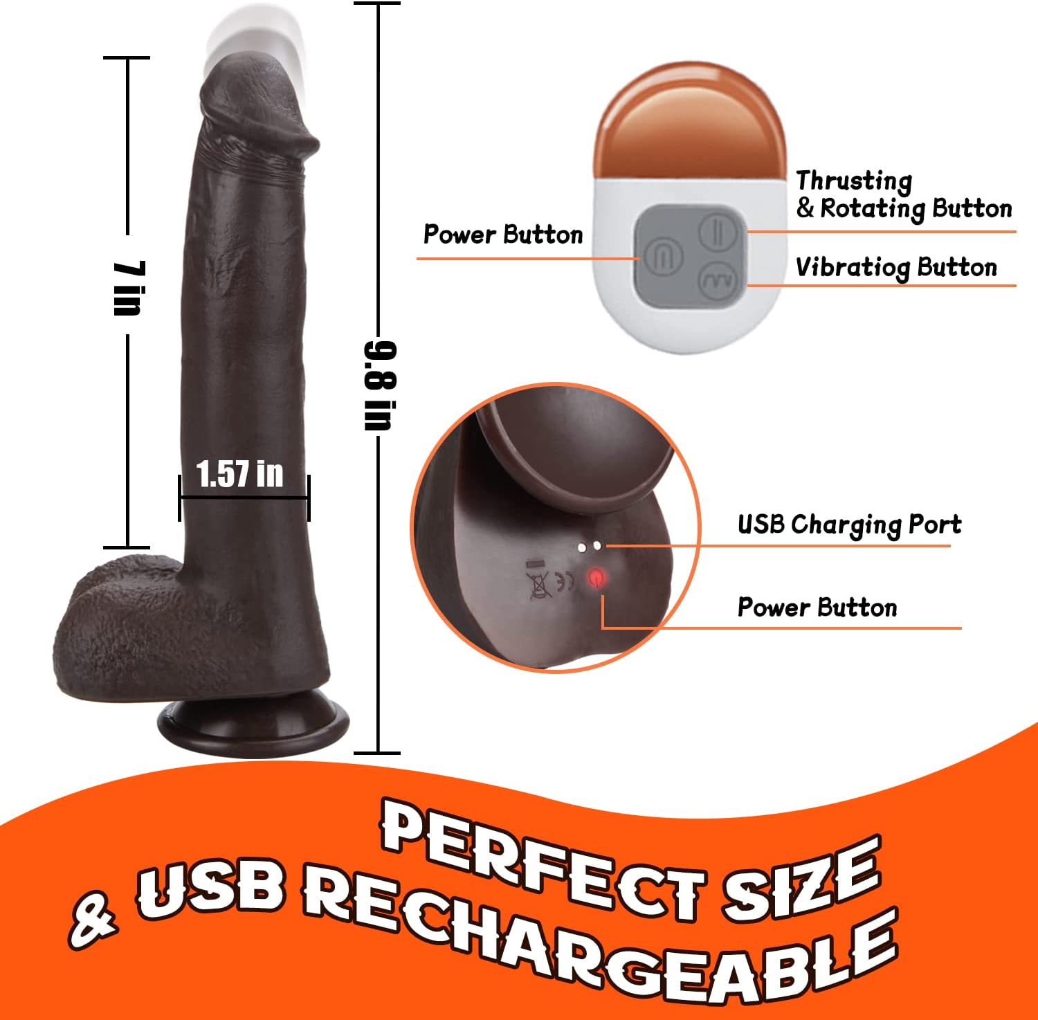 9.8" Thrusting Dildo Vibrator for Women, Realistic Vibrating Dildo with Remote Control 3 Telescopic & 5 Vibrations Modes, Silicone Telescopic Dildo Sex Toys for Couple G-spot Anal Stimulation