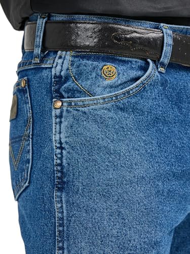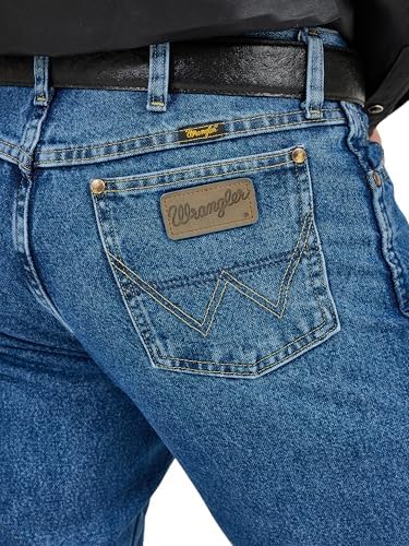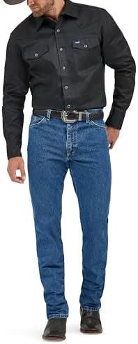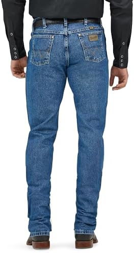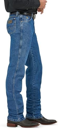 ORIGINAL FIT. Designed with a functional fit in mind, these jeans are made to stack over your favorite pair of boots. Constructed with a comfortable fit In the waist, seat and thigh, this jean is made for both function and comfort. A COUNTRY CLASSIC. Wrangler’s classic fits enhanced by the King of Country. These George Strait jeans are modeled after Wrangler’s authentic styles with embellishments by George himself. DURABLE MATERIALS. It's no question that this classic can withstand wear and tear. Built with durable heavyweight cotton denim and felled seams, this jean was made to last -- no matter the task. COMFORTABLE WEAR. Whether you're out to lunch or working in the yard, you need a jean that keeps you comfortable throughout the day. Made from 100% cotton, this jean provides comfort and breathability for your day ahead. FIVE POCKET STYLING. This cowboy cut jean is constructed with an authentic five pocket styling: (1) watch pocket, (2) front scoop pockets, (3) back patch pockets. Finished with copper rivets for added long-lasting durability. Authentic five pocket styling