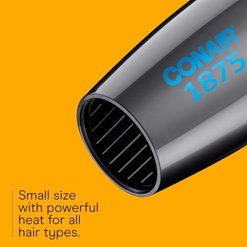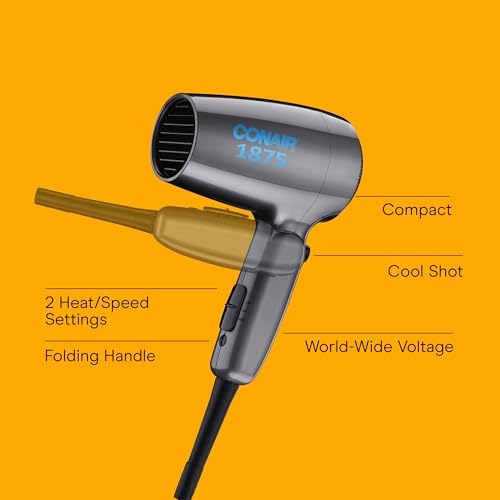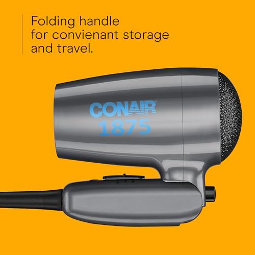 Conair Travel Hair Dryer with Dual Voltage, 1875W Compact Blow Dryer with Folding Handle, Gray