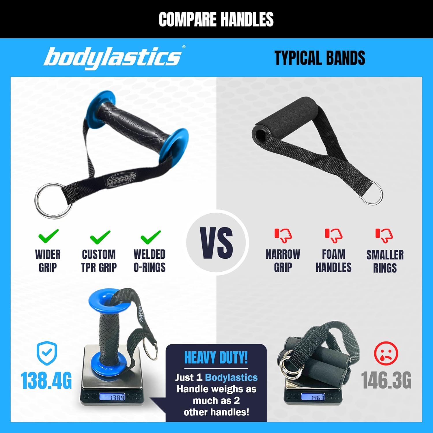 - ✅ PRO SERIES - Workout With Easy Grip Ergonomic Handles: The upgraded, nonslip, sweat resistant handles for our exercise bands provide a firm, secure, and comfortable grip and help you make the most of your cardio, weightlifting, or strength-building workout.
