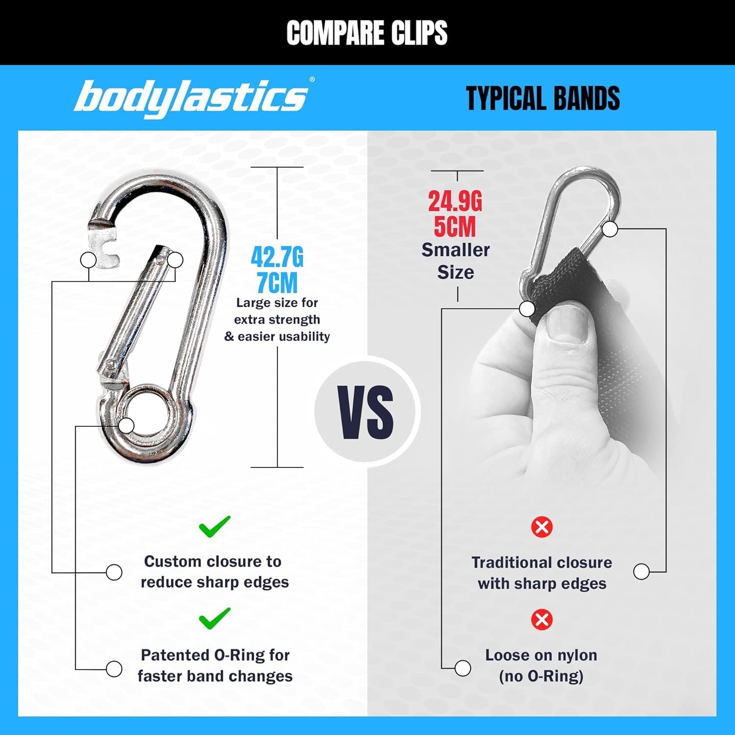 - ✅ PRO SERIES - Durable Clips For Safe Attachment: Our resistance bands have premium patented clips. Unlike other brands, our clips stay in place and do not flop around when using them.