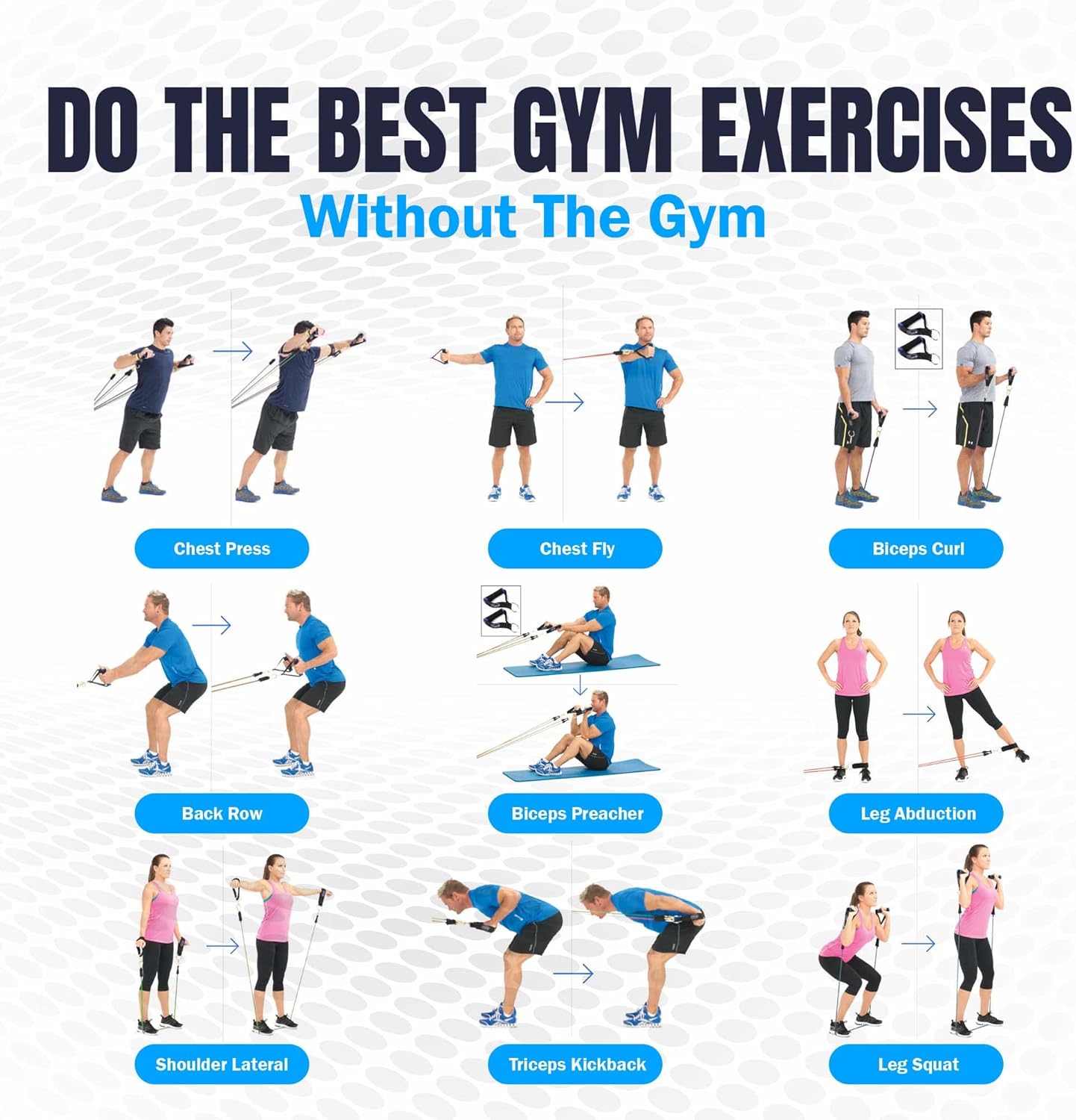 - ✅ PRO SERIES - Long-Lasting Tube Resistance Bands: This workout set includes 5 premium workout bands of different MAX resistance levels, 3 to 10lbs Max, 5 to 20lb Max, 8 to 30lb Max, 13 to 50lb Max, 19 to 80lb Max, offering a total of 190 lbs stackable resistance. Our resistance bands are crafted of 100% natural Malaysian Latex with a continuous dip method which creates a superior resistance band. Each band incorporates our patented Snap Reduction tech and are great for high-impact training.