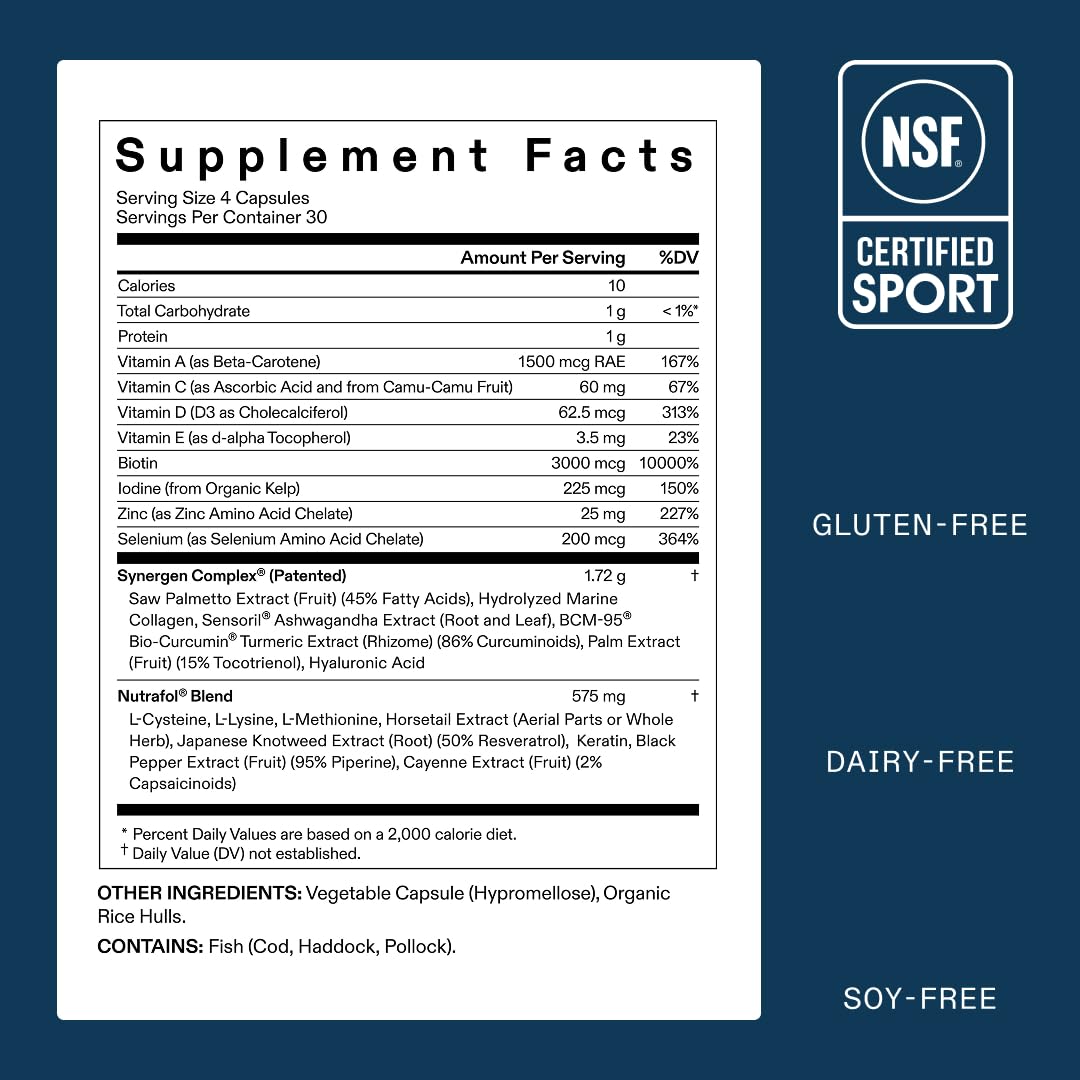 Nutrafol Men's Hair Growth Supplements, Clinically Tested for Visibly Thicker Hair and Scalp Coverage, Dermatologist Recommended - 1 Month Supply