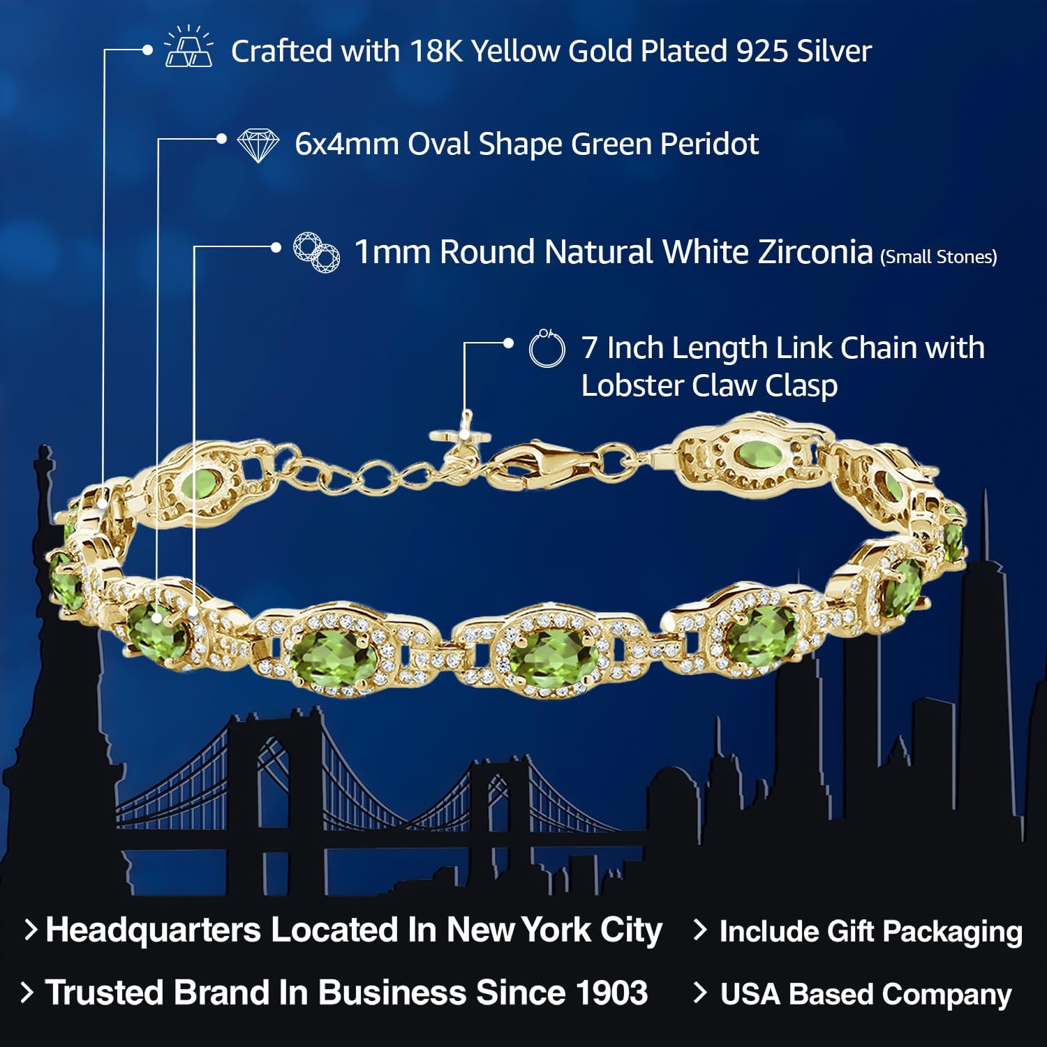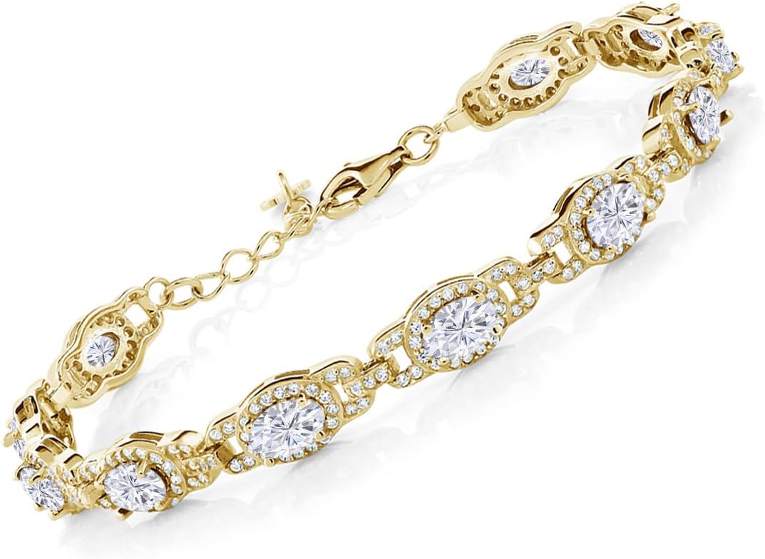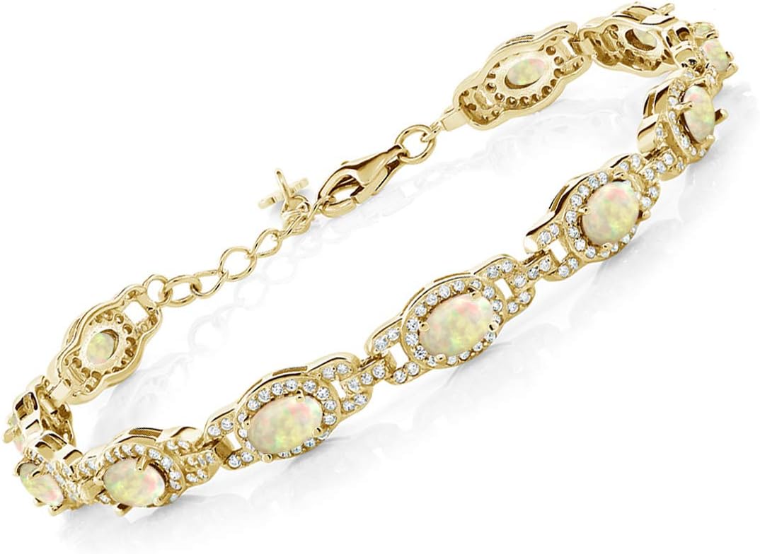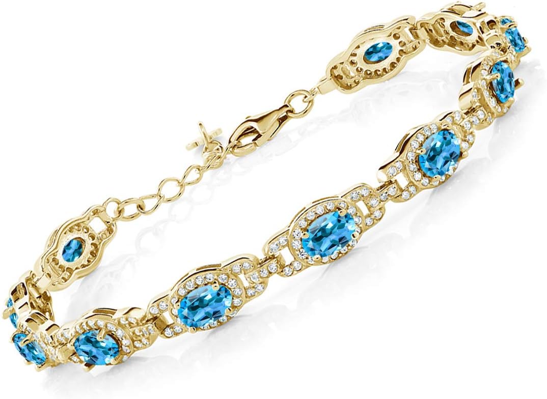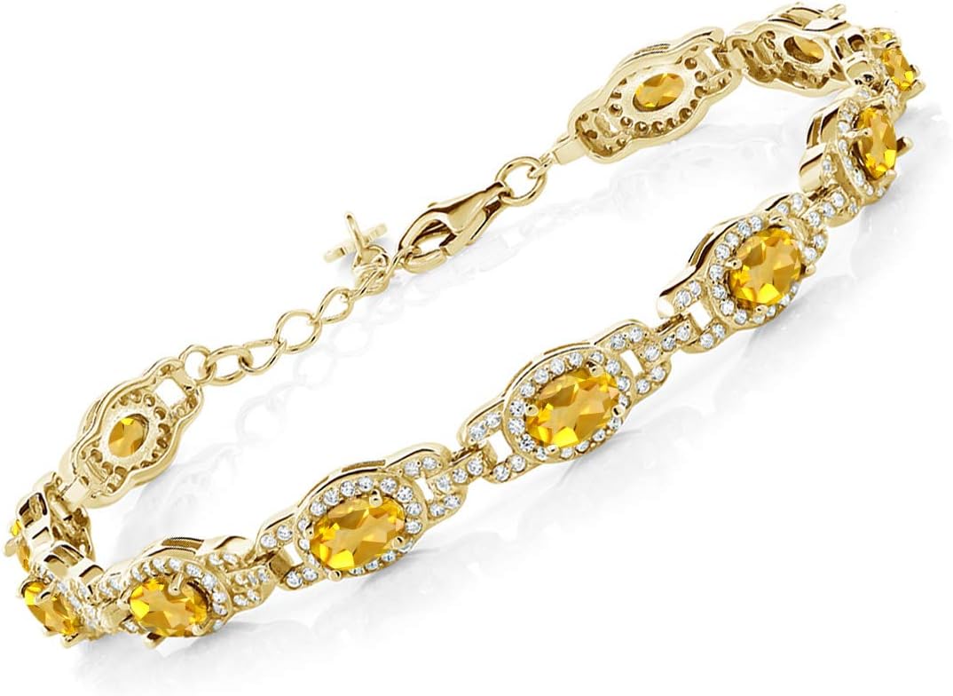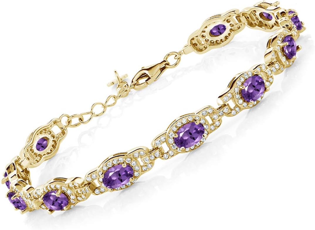 Gem Stone King 18K Yellow Gold Plated Silver Oval Gemstone Birthstone Tennis Bracelet For Women | Oval 6X4MM | 7 Inch With 1 Inch Extender | Fine Jewelry Gifts for Her Mom Women Wife