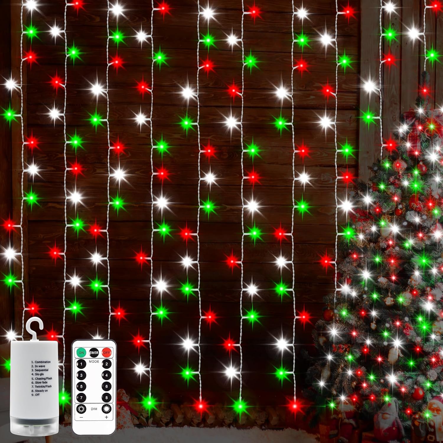 echosari 300 LED Curtain Lights Battery Operated, 9.8ft×9.8ft Hanging Light with Remote Timer Fairy Curtain Lights for Bedroom Patio Wedding Backdrop Party Decór (Warm White)