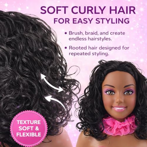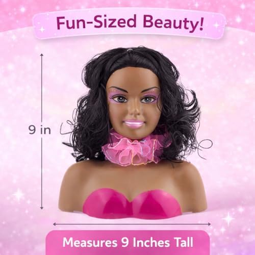 Liberty Imports African American Black Makeup and Hair Styling Doll Head Toy Playset with Real Washable Cosmetic and Fashion Dress Up Accessories for Girls Pretend Play