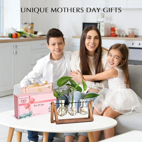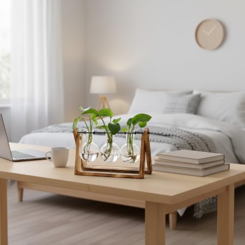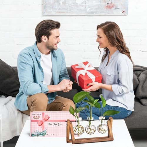 ✿ Nice photo prop - Suitable for Cool and Vintage Ins style. It will be more beautiful and eye-catching if you fill the bottle with colored water or put some cobbles , flowers, plants or a little fish and create a unique décor statement. ✿ Perfect combination of natural wood and clear glass- Frame is made of sturdy and robust nature wood, 3 bulb terrariums are made of High boron silicon heat resistant glass. (thick and durable to withstand the pass of time). Elevate your home office décor and serves as essential plant accessories for any space,and bring a touch of freshness and elegance to your house & office. ✿Retro Home Office Décor: Great for floral arrangement, cutting plants, artificial, freshly flowers, mixed bouquets, water rooted plants or live houseplants, likes Scindapsus, Pothos vine, African violets, Lucky Bamboo, even for Herbs, you can observe its growth condition and help your plants thrive, perfect for your home windowsill, office desk, living room table, bedroom, nursery or kitchen.Makes thoughtful daughter gifts and wife gifts for plant-loving women. ✿ Best gifts for women plant lovers: Perfect holiday gift, wife gift ideas, nature gifts and garden gifts for Mother's Day, birthday, Christmas, Valentine’s Day, Thanksgiving gift ideas,horticulturist gifts, nice present to your nature-loving gardeners,sweet wedding party, anniversary, and special occasions decoration gifts. ✿The wooden stand size : 5.5"H x 11" W x 4" D; Each vase : 3.74 H x 2.75 W; Opening – 1 inch Diameter. Suitable size perfect for desktop in office or home, accessories complete and easy to set up. (Includes hex driver and screws, but no plants Include)