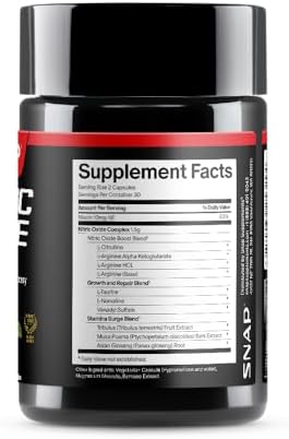 Snap Supplements Nitric Oxide Supplement with L-Arginine to Support Energy, Quick Recovery, Heart Health, Muscle Growth & Circulation, 60 Vegetarian Capsules (1 Month Supply)