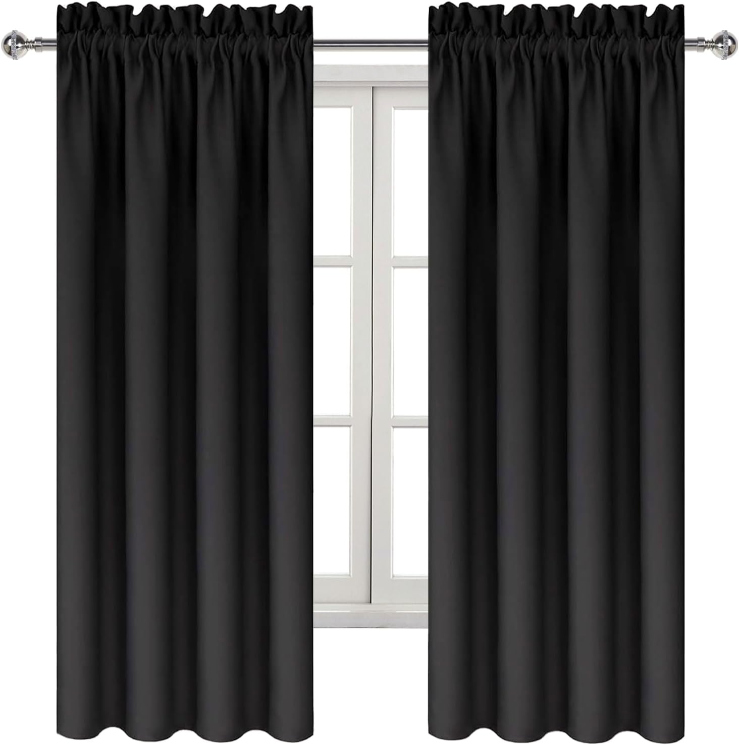 DWCN Blackout Curtains \u2013 Thermal Insulated, Energy Saving & Noise Reducing Bedroom and Living Room Curtains, Black, W 42x L 63 Inch, Set of 2 Rod Pocket Curtain Panels