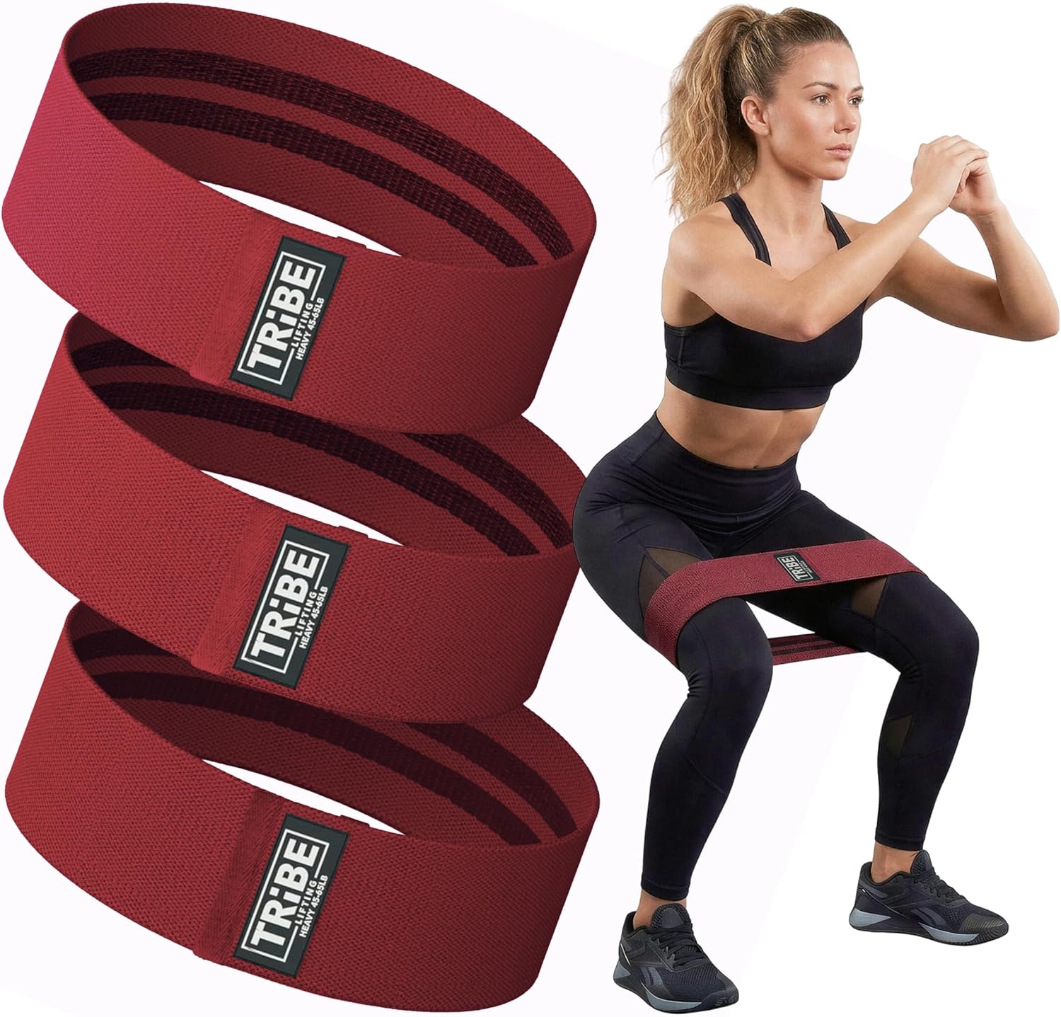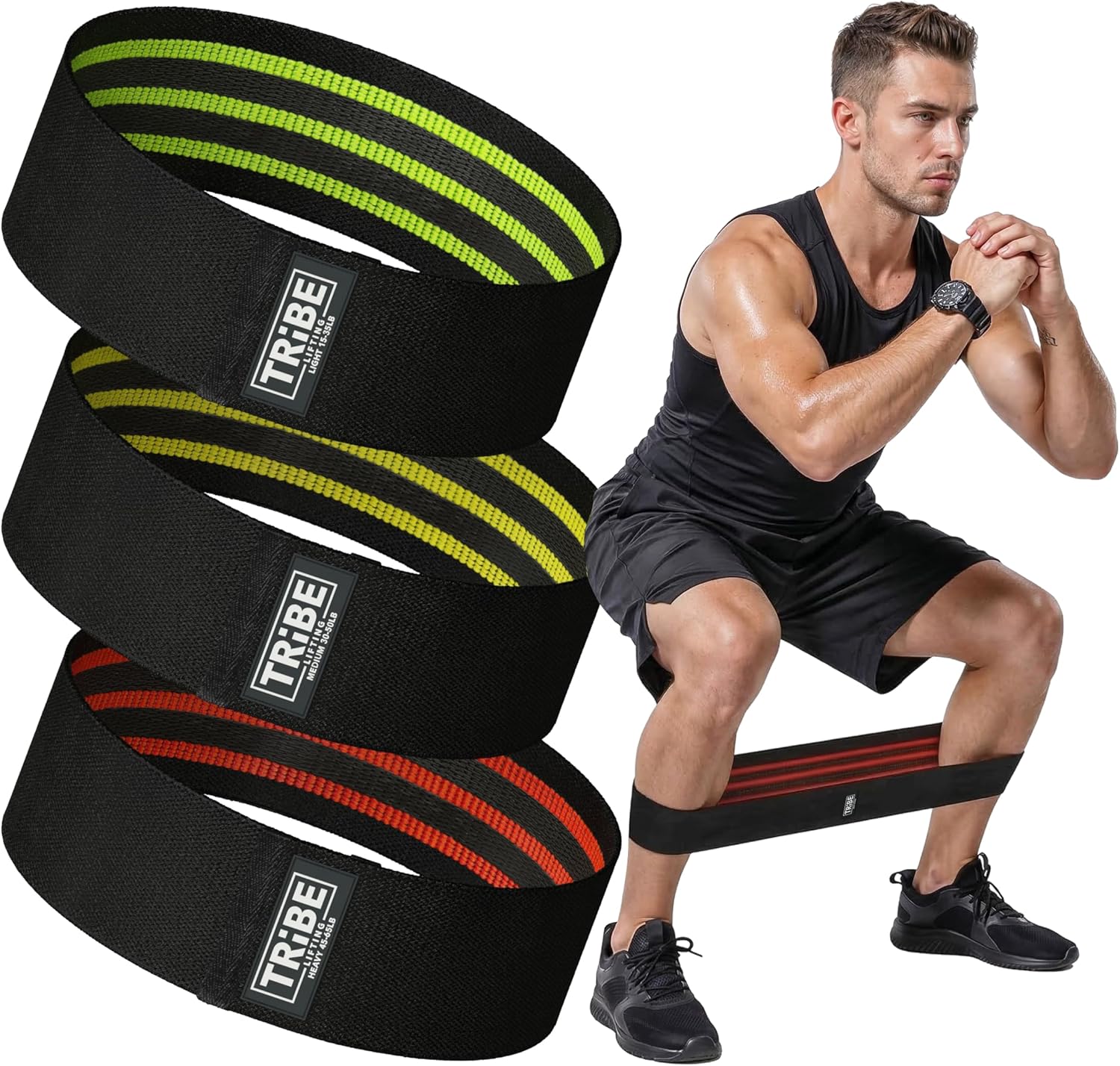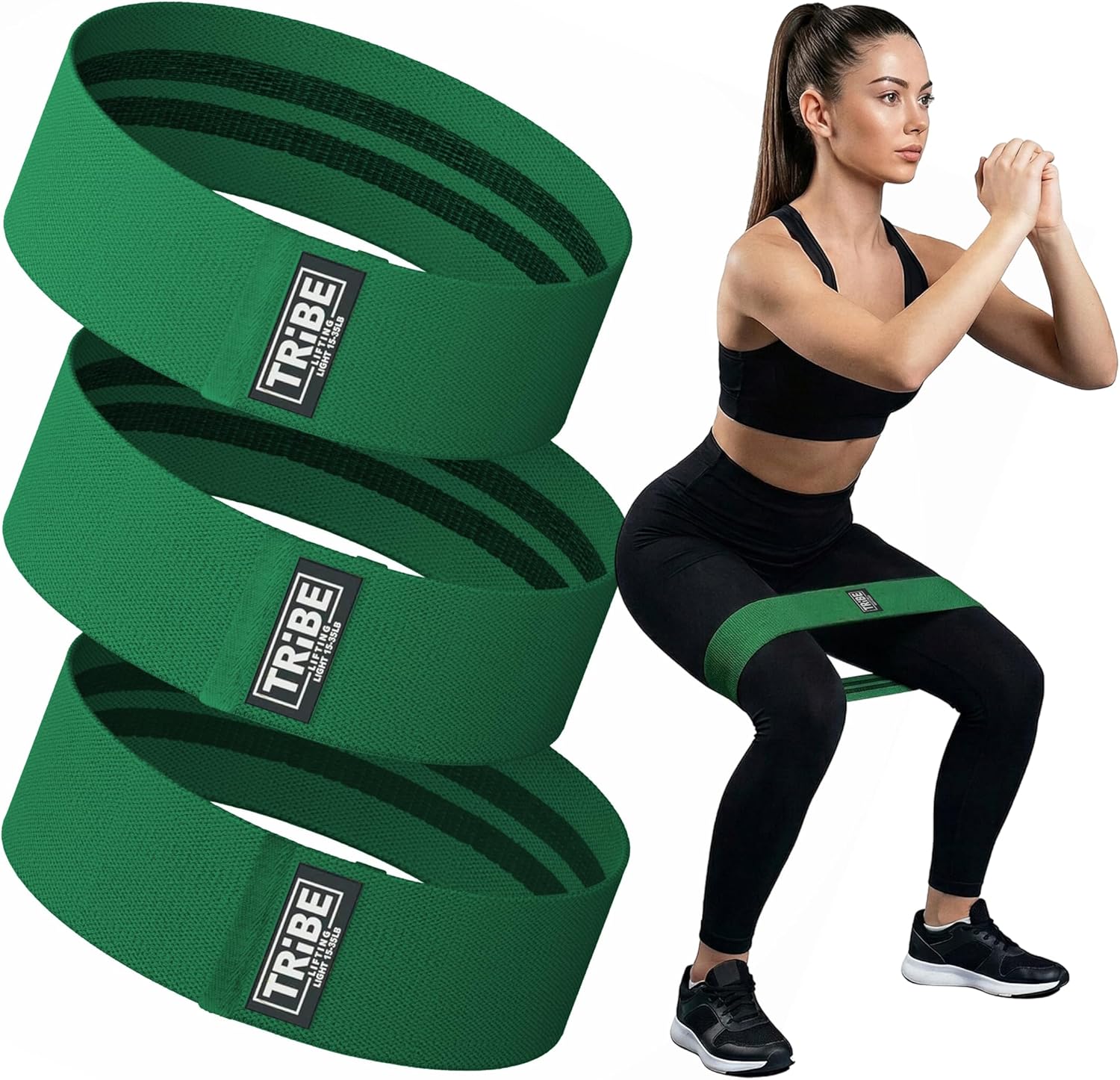 Tribe Lifting Resistance Bands for Working Out - 3 Pack Fabric Workout Bands for Women and Men - Booty Bands for Legs and Glute - Non Slip Exercise Bands Set for Squat Hip Thigh