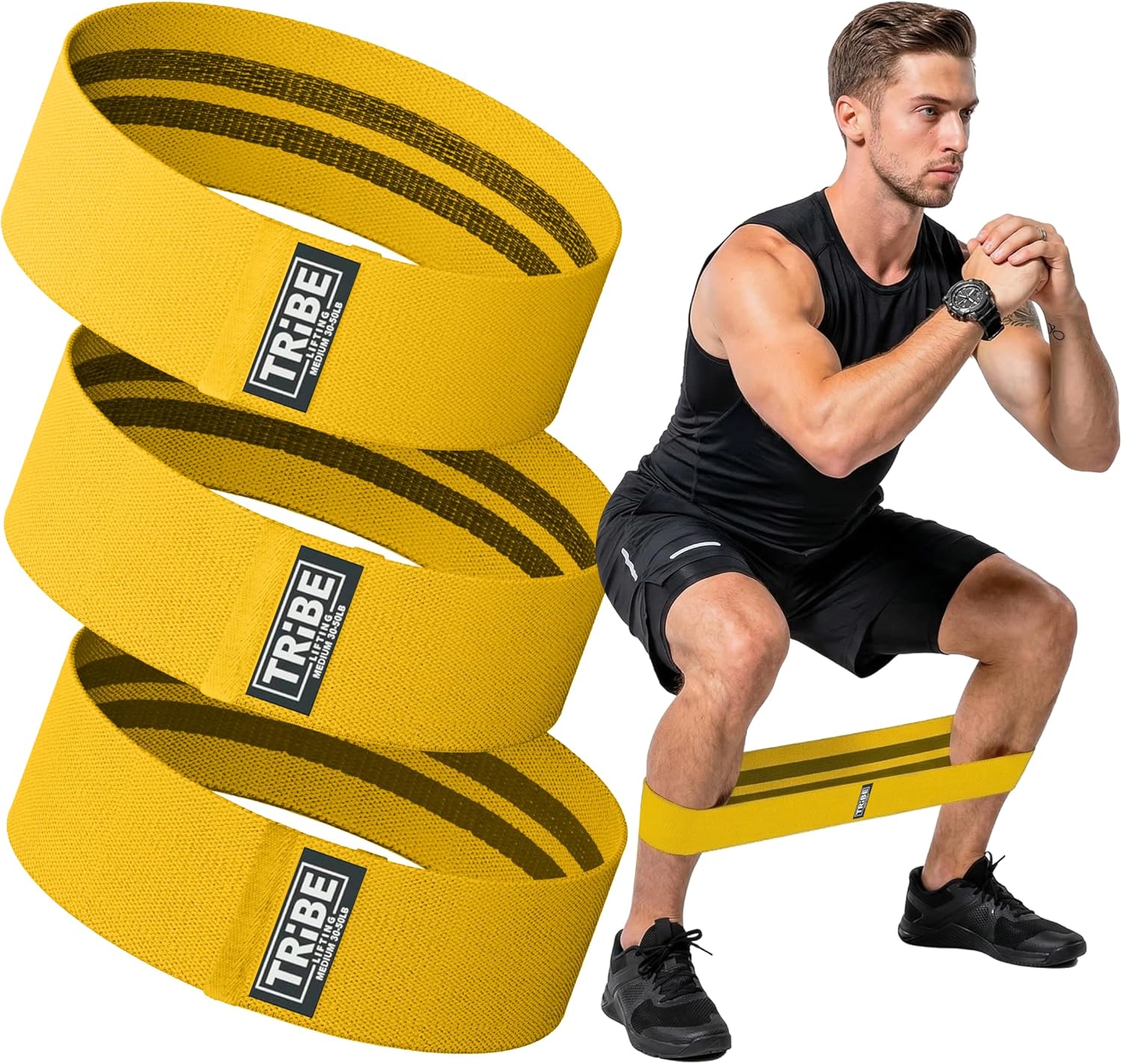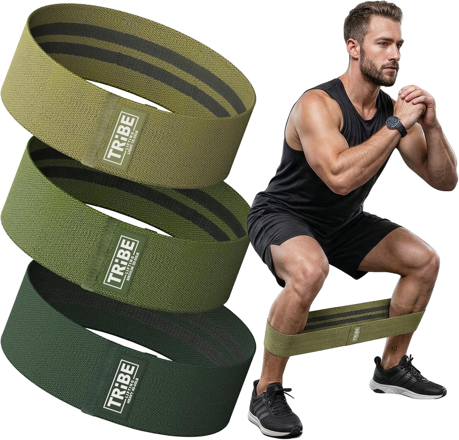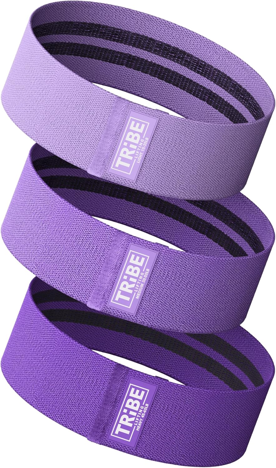 Tribe Lifting Resistance Bands for Working Out - 3 Pack Fabric Workout Bands for Women and Men - Booty Bands for Legs and Glute - Non Slip Exercise Bands Set for Squat Hip Thigh