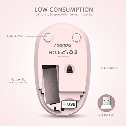 Vibrant Multi-Color Options for Every Scene -- If you want a cute, colorful mouse, this could be your choice. Also, the various color option and the compact size make it the best choice for home, office or travelling use. 2.4G Wireless Connection - Plug & Play Freedom -- 2.4G lag-free wireless tech with up to 33ft range, this usb mouse wireless supports stable connection for all devices.This wireless mouse for laptop is plug-and-play, no extra drivers needed; ideal as a mouse for chromebook. Ultra-Light & Compact - Easy to Carry Anywhere--4×2×1.25 inches palm-sized laptop mouse, This wireless mouse for laptop fits easily in laptop bags or small pouches—takes up zero extra space, perfect as a mouse for chromebook.This usb mouse wireless is effortless to carry for commutes, business trips or study sessions at cafes; work anytime, anywhere with this laptop mouse. Noiseless Clicks - Quiet & Disturbance-Free -- Highly responsive buttons that deliver ultra-soft clicks, this usb mouse wireless offers quiet operation for all scenarios.No loud "click-clack" sounds when using this laptop mouse, quiet and non-disturbing, a great mouse for chromebook in shared spaces.Use this wireless mouse for laptop at night, in libraries or shared offices without disturbing roommates, classmates or coworkers. Only 1 AA Battery is Required -- It takes only 1 AA Battery(NOT Included) to operate this mouse, and the wireless mouse will turn to sleep mode in 10mins of inactivity for energy saving, can be easily activated by clicking any buttons