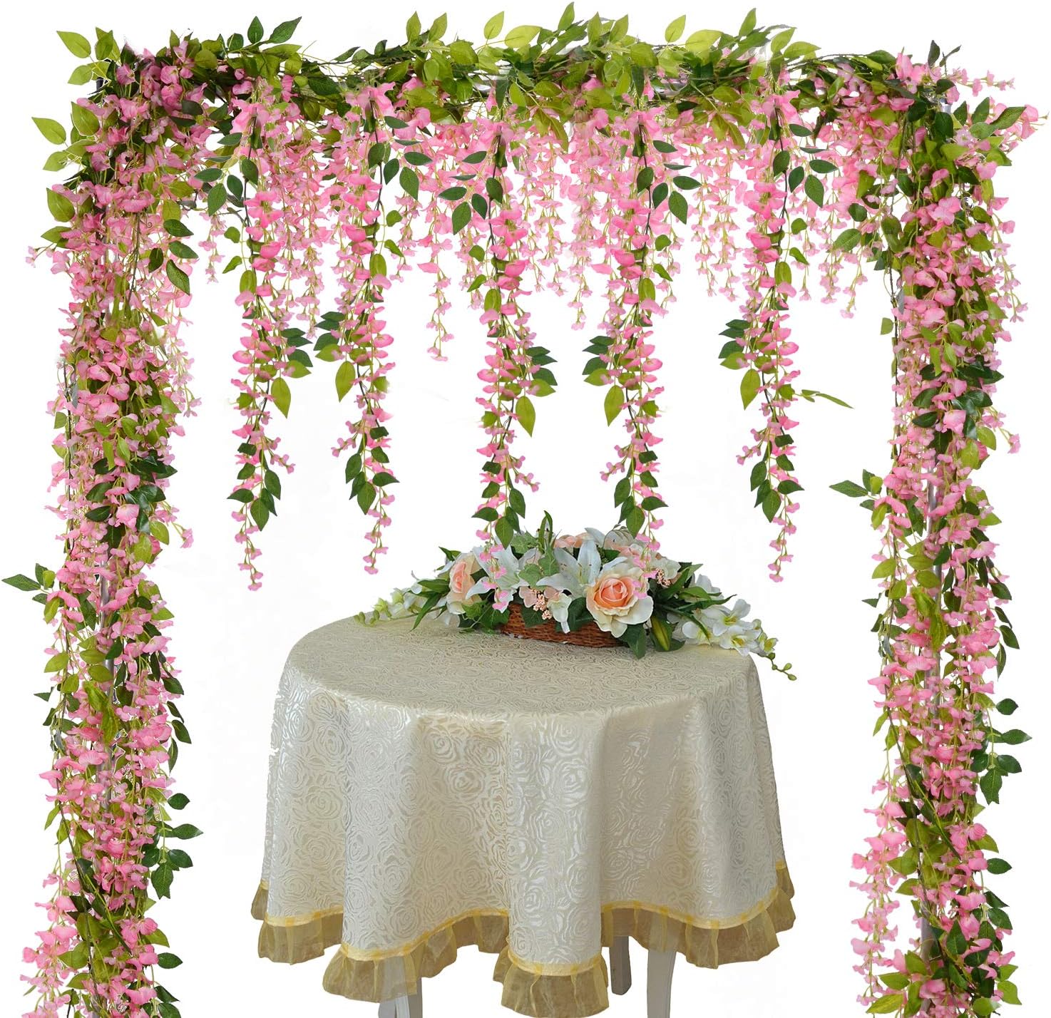 Description: Lvydec Wisteria garland is a symbol of love and happiness, get beautiful for your big day like these artificial wisteria garland. Wisteria vine flowers create a romantic look that makes for a wonderful wedding arch and decor! Features: ☞10 longer strings flower - This silk wisteria is the latest version wisteria artificial flowers ,each piece wisteria garland include 10 longer strings flower,thick silk flowers and leaves,perfect for wedding decoration, table arrangement or elegant home decoration. ☞4 Pack fake wisteria - Vivid silk flowers and Leaf texture clear,make it look more Natural-looking,full and soft petals,simple and elegant,the flower vine can increase more color and vitality to your life ☞Total 28.8ft length - Artificial wisteria vines stems with plastic wire in it.very easy to use it,hanging effect is better.6pcs Artificial Wisteria Vines total length 44.2 feet,enough length for your decoration idea Applications: ☞Flower arrangement: 1 wedding arch should buy 12pcs these wisteria garlad(at least),with more flowers will look more beautiful ☞Suitable for weddings, hotels, parties as well as other ceremonies, best decoration for home, hotel and park, table arrangement or elegant home decoration, also suitable for outdoor. etc. ☞You can hang it on the wall, doors, swing, mirrors and anywhere as you like to enjoy with artificial leaves vine. Package: 4Pcs Artificial Flowers Silk Wisteria vine garland Tips: ☞These artificial flowers is completely handmade, flower heads and leaves may fall off during transport, you can reattach the flowers tightly by yourself. ☞The simulation spent on transportation inevitably be squeezed and deformed , after finishing a little general laid bouquets can be restored ☞Artificial flowers clean general surface with a hair dryer blowing, or wipe with a rag.