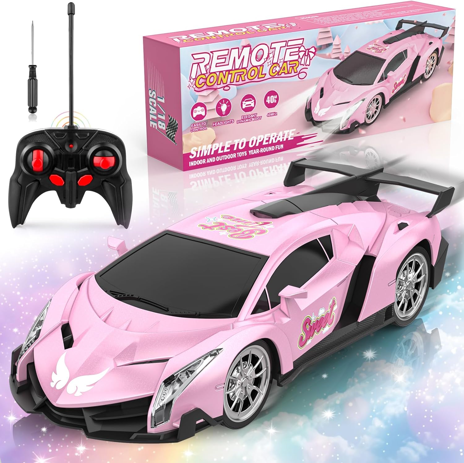 Growsland Remote Control Car, RC Cars for Kids 1:18 Electric Toy Car Hobby Racing Car Toys with Lights & Controller, Christmas Birthday Gift for 3 4 5 6 7 8 9 Year Old Boys Girls