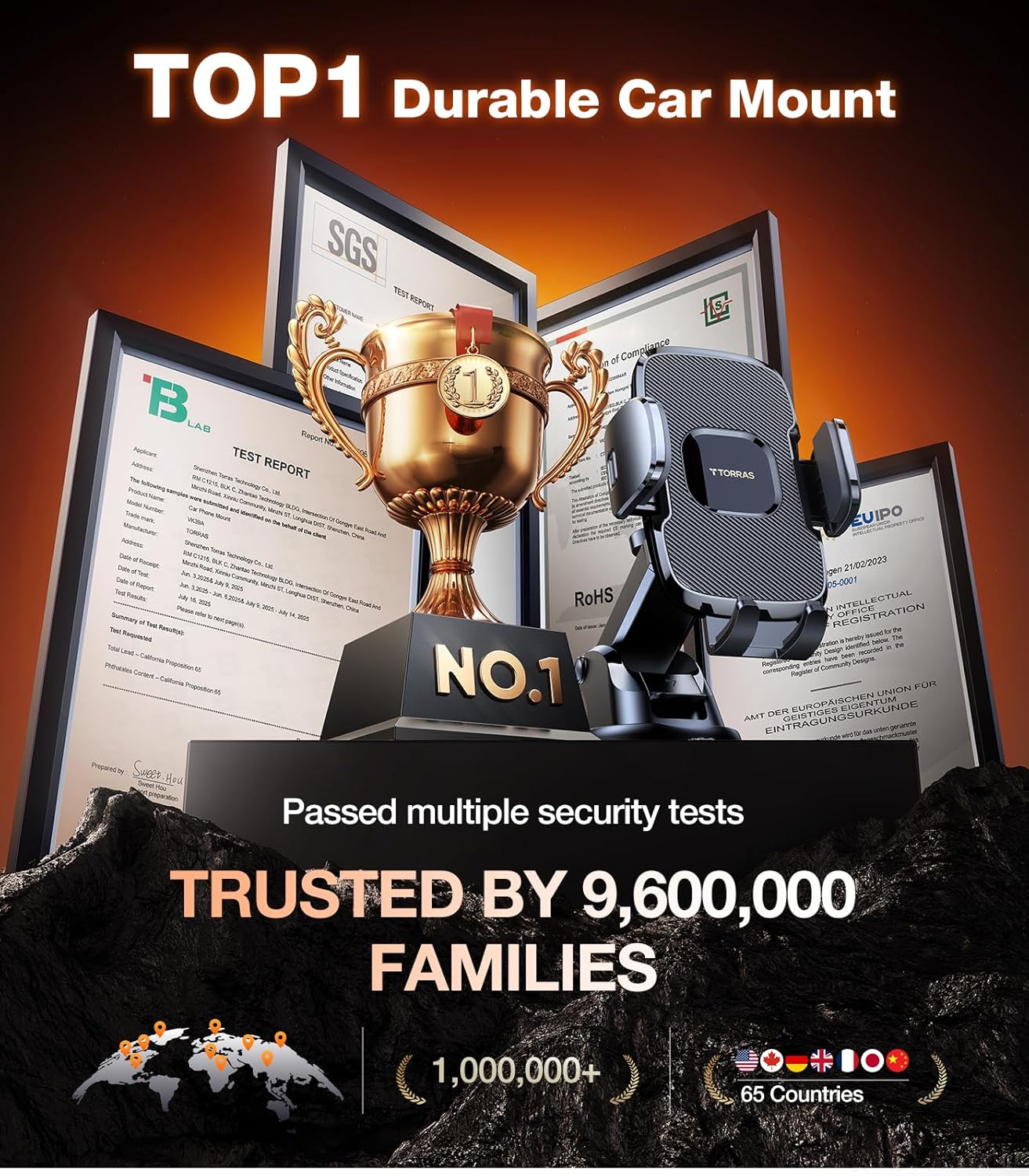 TORRAS Ultra-Durable Phone Holders for Your Car【96+LBS Strongest Suction】 Car Phone Holder Mount, Safety Certs Cell Phone Car Mount Truck for Dashboard Windshield Vent for iPhone 17 16 15 14 Pro Max