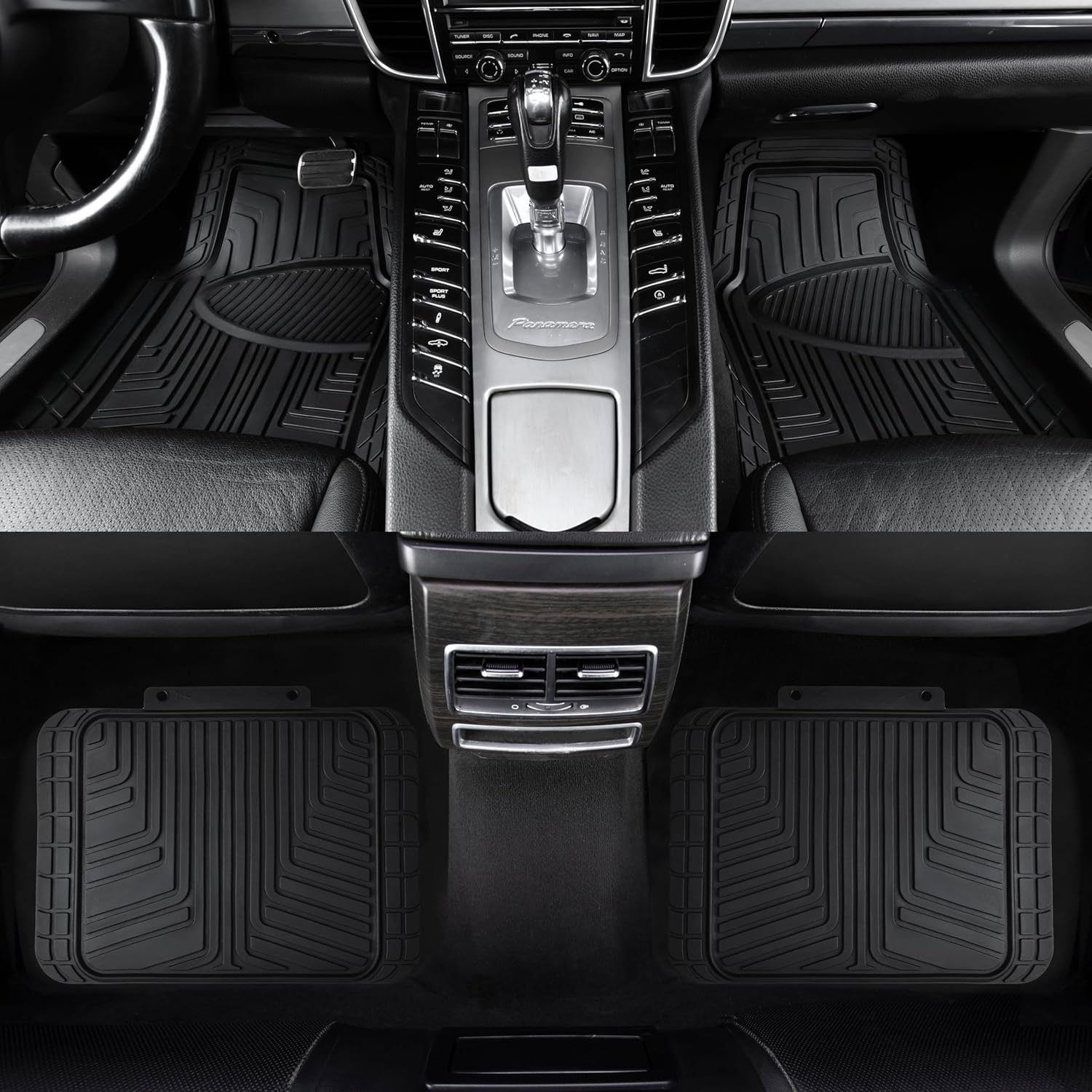 Amazon Basics 4-Piece Premium All-Season Anti-Slip Rubber Floor Mats, All Weather Protection for Cars, SUVs and Trucks, Universal Trim to Fit, Black