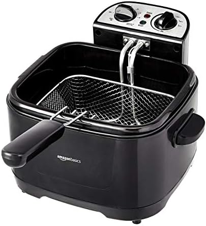 Amazon Basics 2.1-Qt (2.0L) Electric Deep Fryer with 8-Cup Oil Capacity, Adjustable Temperature Control, Timer, Easy Draining Removable Basket, Viewing Window, 1500W, Black