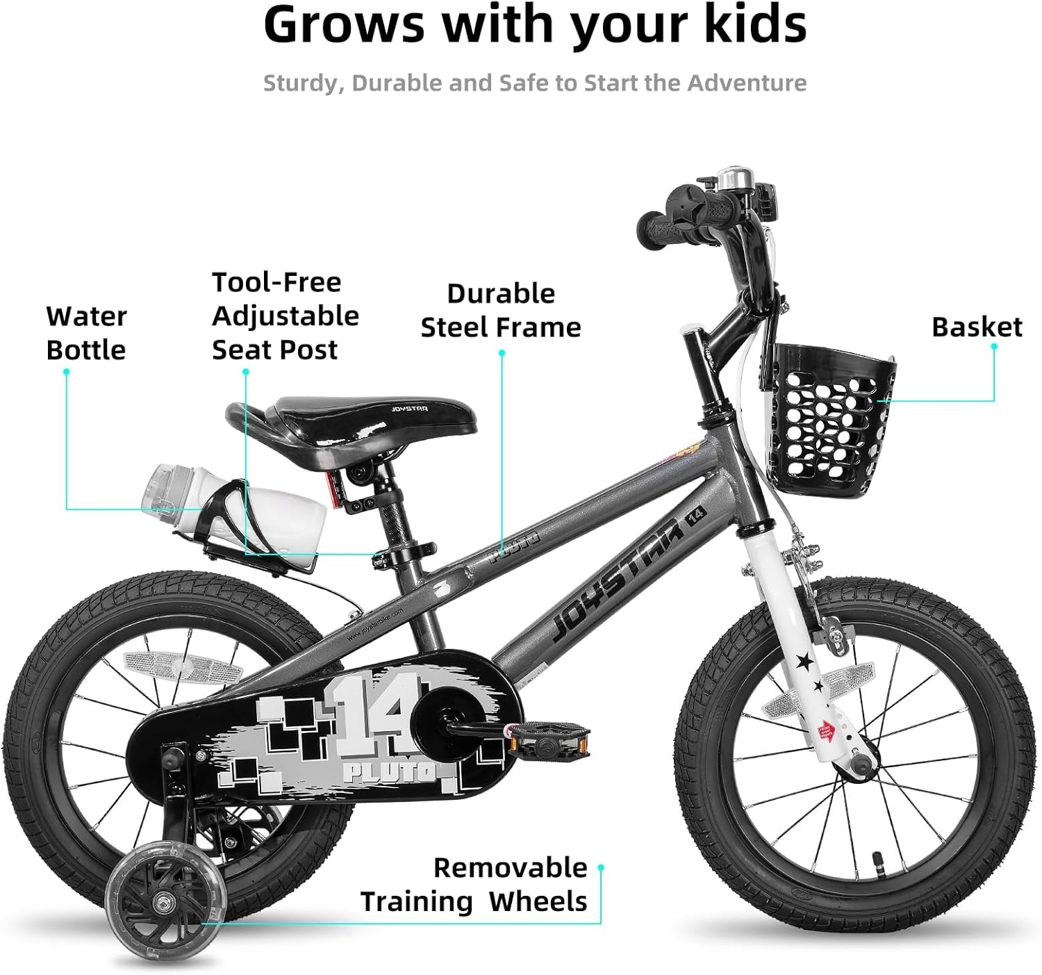 JOYSTAR Pluto 12 14 16 18 20 Inch Kids Bike with Light Up Training Wheels, Kids' Bicycle for Boys Girls Age 3-12 Years, Children Bikes, Multiple Colors