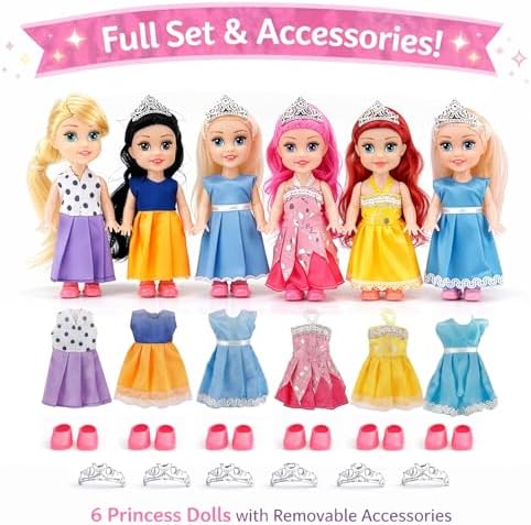 Liberty Imports Little Royal Princess Toddler Dolls with Dresses, Girls Imaginative Pretend Play Small Dolls Party Favors Collection (Princess)