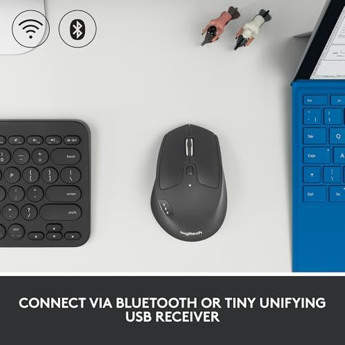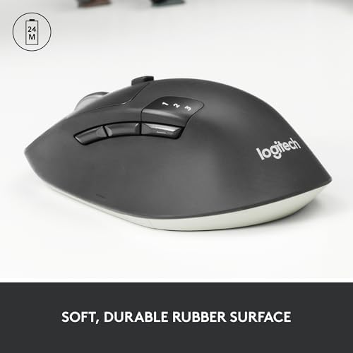 Long-lasting and Versatile: Designed for endurance with 24-month battery life (1), M720 is compatible with computers, laptops and tablets, Windows, macOS, Chrome OS, Linux, and iPadOS. Comfortable Grip: Crafted for the right hand, this full-sized wireless PC mouse features a rubber body and a sculpted design for palm rest grip and comfort like never before Hyper-Fast Scrolling: Fly through long documents and web pages with a simple spin of the mouse wheel with the additional instant-stop feature and an option to switch to click-to-click scrolling Dual Connectivity: Connect the cordless mouse via Bluetooth or the wireless Logitech Unifying receiver, which lets you connect up to 6 compatible Logitech peripherals with only 1 USB receiver Multi-Device Wireless Mouse: Move cursor, text, and files across multiple computers with Logitech FLOW; easily switch between up to 3 computers or laptops with the touch of a button Personalized Productivity: Unlock a full range of possibilities and customize this laptop mouse to fit your needs; set up and assign shortcuts to the 6 customizable buttons with Logitech software Product carbon footprint: 5.08 kg CO2e
