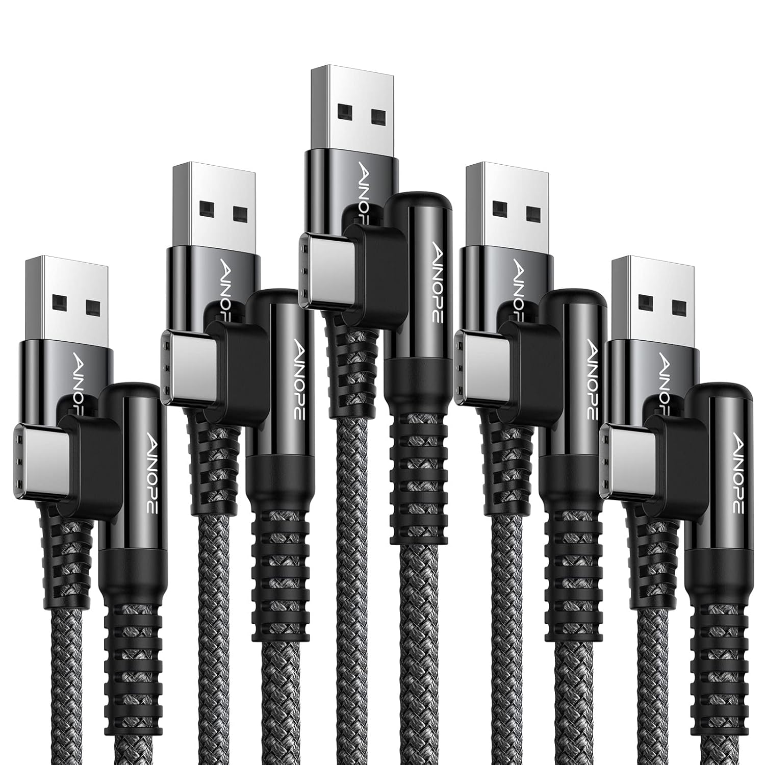 AINOPE USB to USB C Cable [2-Pack, 6.6ft] 3.1A Type C Charger Fast Charging, Right Angle USB C Cable for iPhone 17 Carplay Cable, Galaxy S10+ S10 S9, Note 10 9, LG V30, Moto, iPhone 16 15 Charger Cord