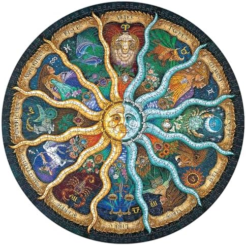 Zodiac Puzzles for Adults 1000 Pieces - Round Horoscope Astrology Jigsaw Puzzle, Challenging Difficult Mandala Constellation Puzzle for Adults, 26.7 Inch Finished Size, with Poster Included
