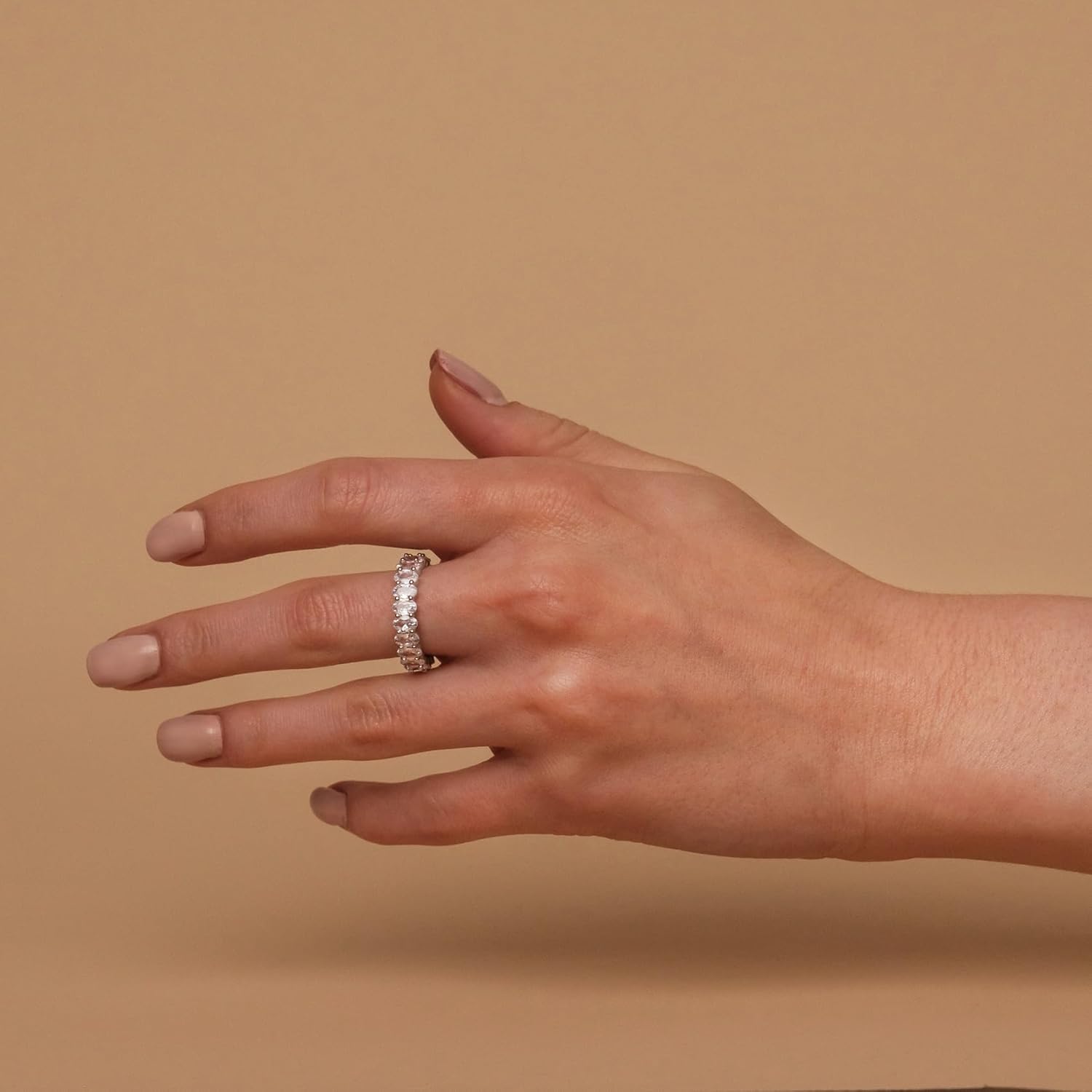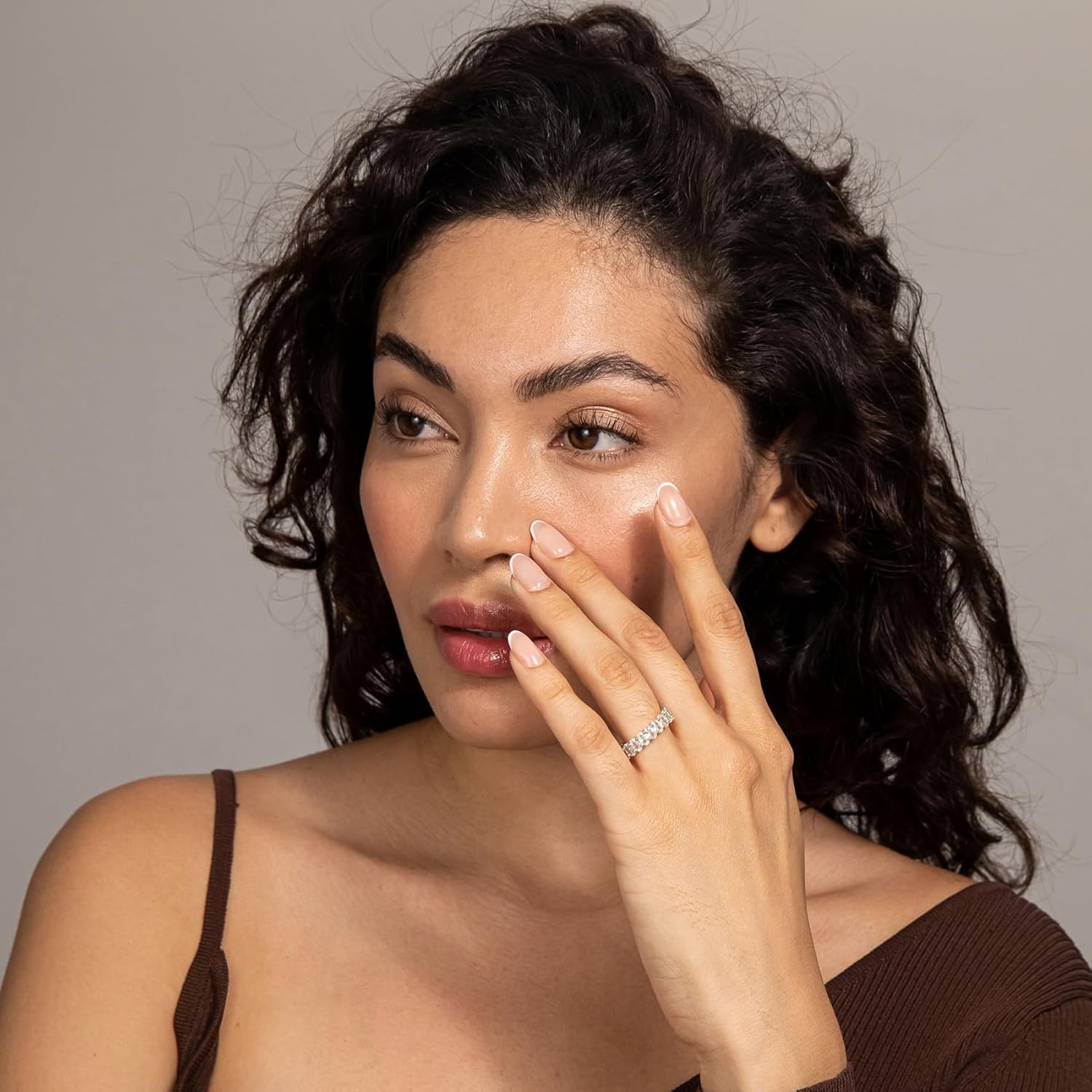 PAVOI 14K Gold Plated Eternity Ring for Women - Statement Eternity Band Rings with Oval Cubic Zirconia - Stackable Wedding Band - Love Engagement Trendy Bridal Jewelry