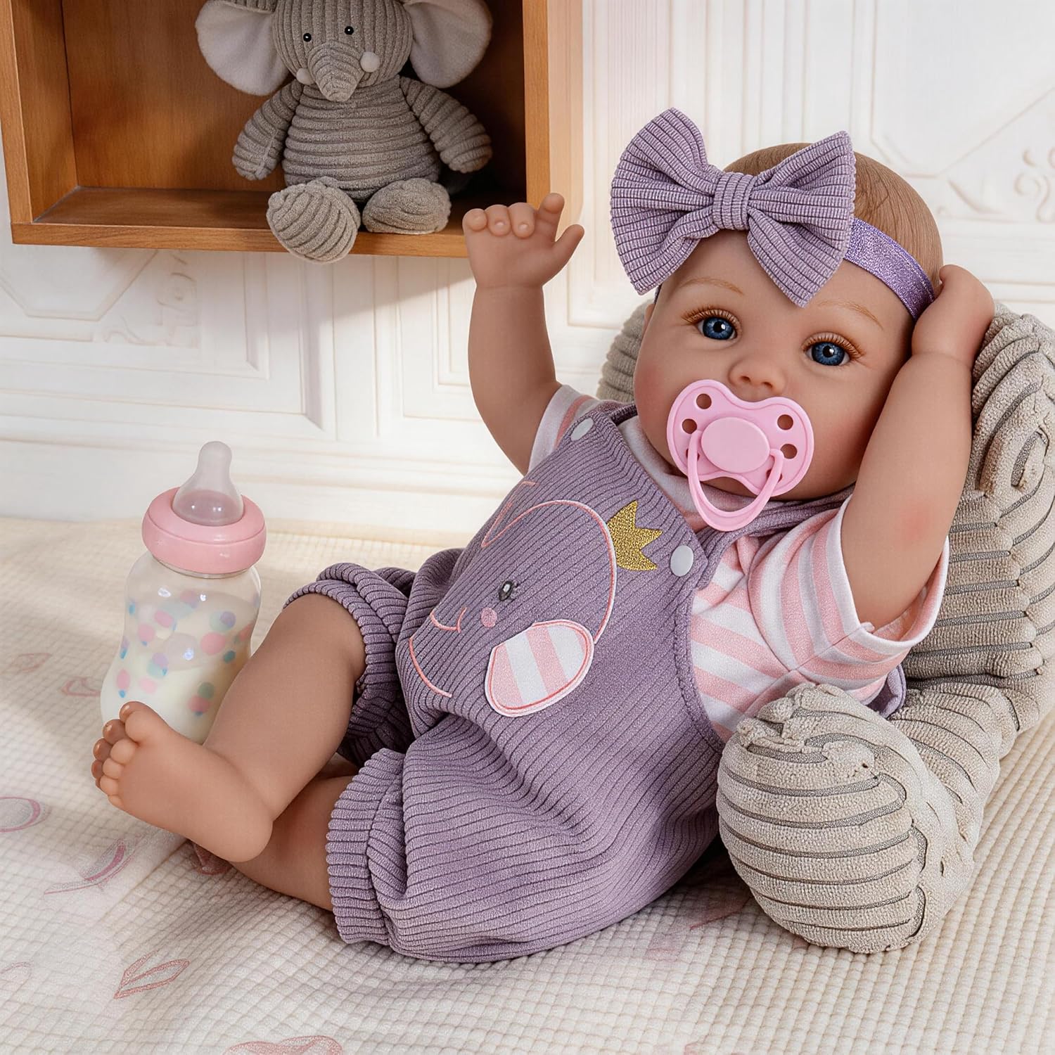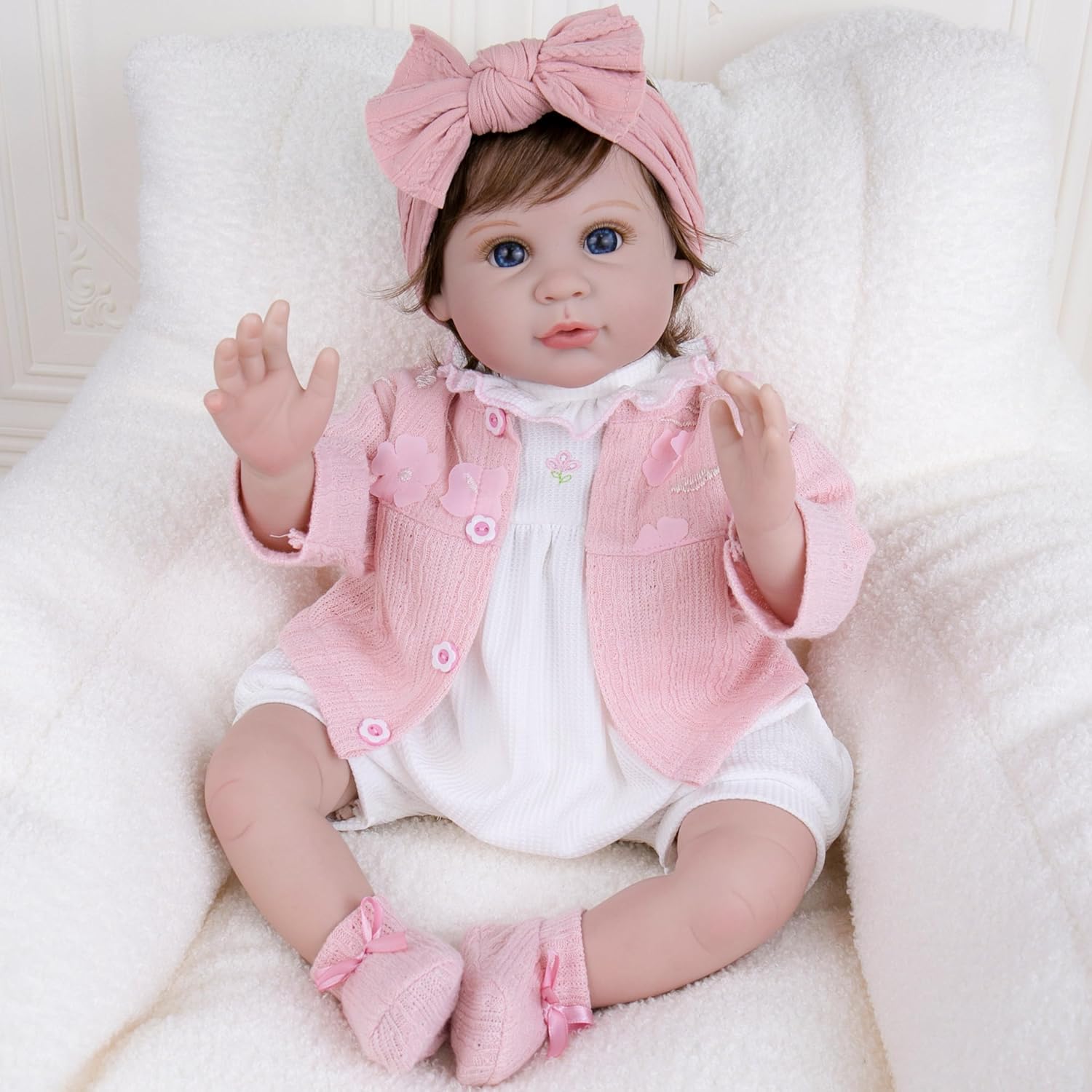 Milidool Reborn Baby Dolls Girl, 22 inch Soft Body Lifelike Realistic Newborn Baby Girl Real Life Baby Dolls with Gift Box Feeding Toy Accessories Set,Gift for Grandma and Kids 3+