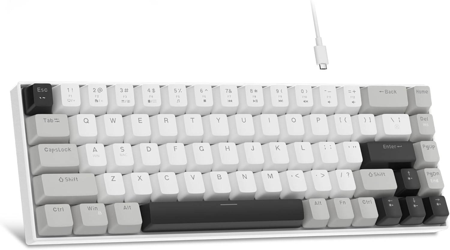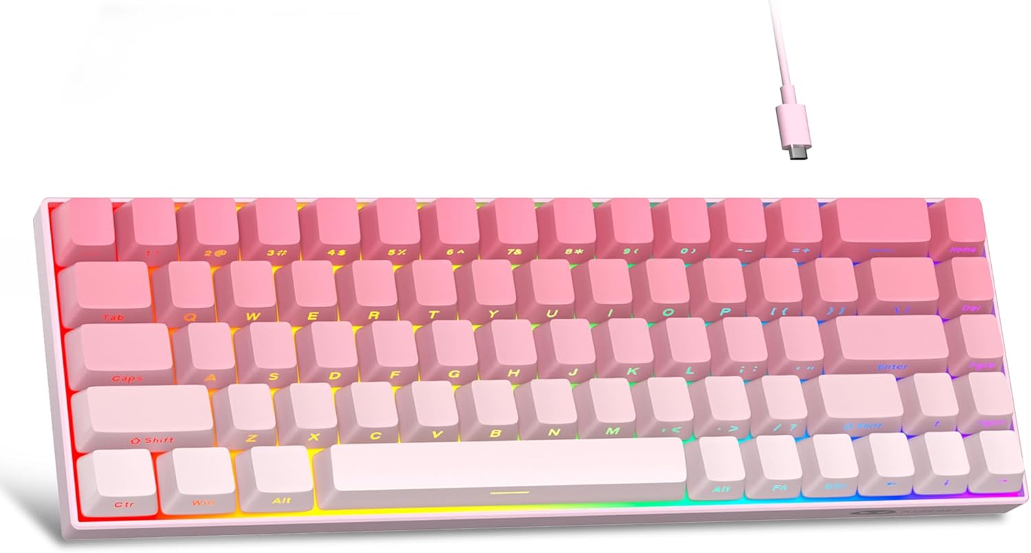 Mini portable 60% compact layout: MK-BOX is a 68 keys mechanical keyboard have cute small size, but with separate arrow keys and F1-F12, Fn function keys you need, can use it for gaming or work while saving space.