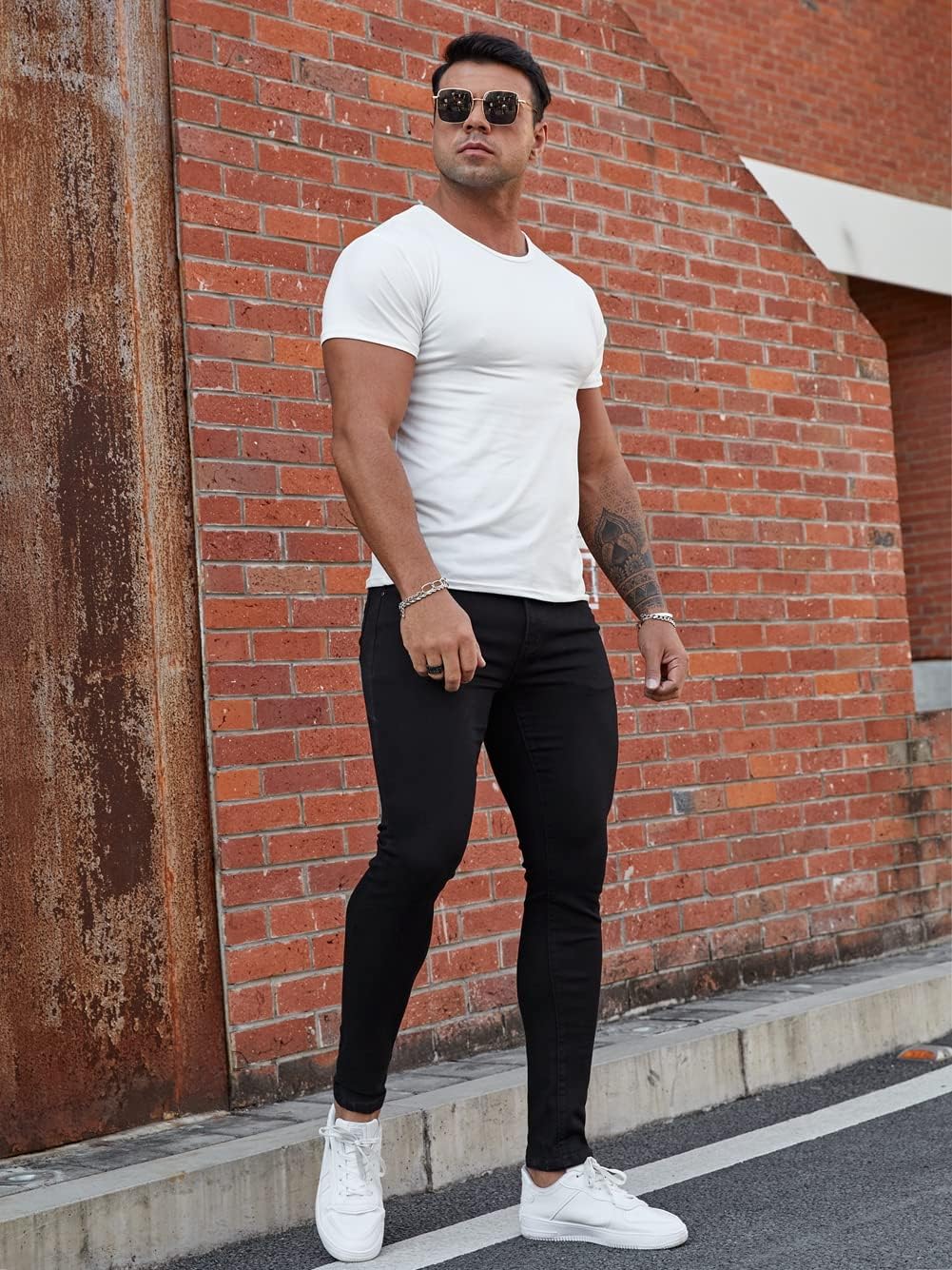 FIILIMER Men's Super Skinny Stretch Tapered Leg Slim Fit Ripped Distressed Jeans\u2026