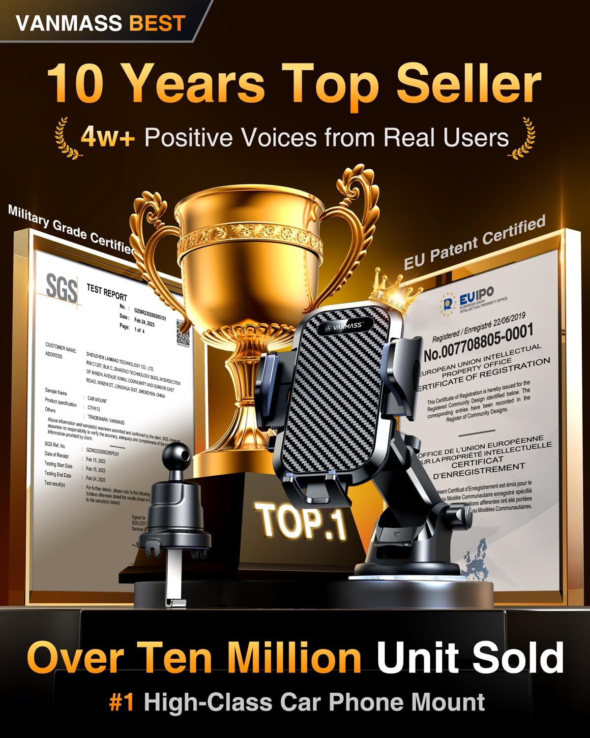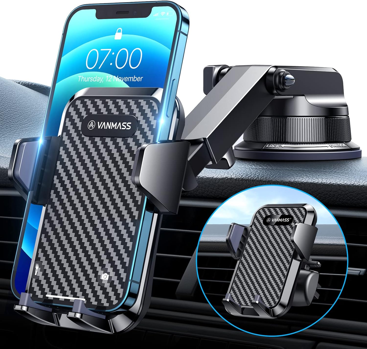 VANMASS Car Dashboard Phone Holder Universal Powerful Suction Cup Mount, Dash Windshield Air Vent Truck Stand Compatible with All Phones Black
