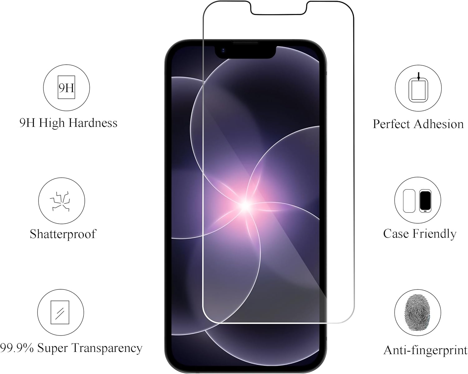 Ailun Screen Protector for iPhone 17e \/ iPhone 16e \/ iPhone 14 \/ iPhone 13 \/ iPhone 13 Pro [6.1 Inch] Display 3 Pack Tempered Glass, Case Friendly [Not for iPhone 16 6.1 Inch]