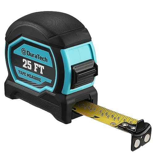 DURATECH Magnetic Tape Measure 25FT with Fractions 1/8, Retractable Measuring Tape, Easy to Read Both Side Measurement Tape, Magnetic Hook and Shock Absorbent Case for Construction, Carpenter