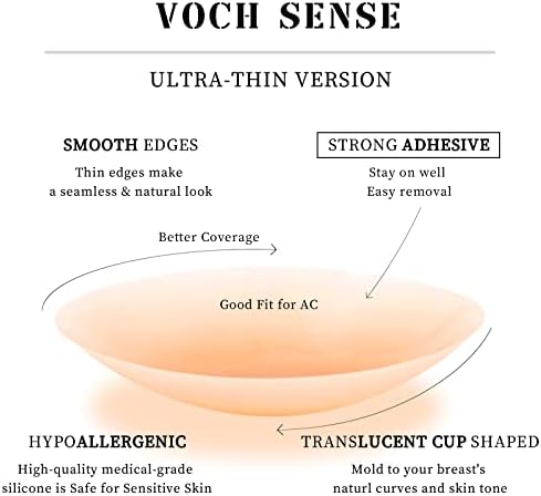 【Seamless Invisible Nipple Covers】 - The thin edge blends with the skin to give that ultra-smooth appearance, so nobody will notice you're wearing the seamless pasties! They are also suitable for swimming and other water sports. 【Strong Adhesive】 - Sticky enough to keep in place until you're ready to take them off. And the premium adhesive is easy to remove and won't leave red marks on your delicate skin. 【Bra Alternatives for Women】 - Tired of wearing bras? VOCH Sense quality silicone combines comfort and thinness, offering good coverage for A-C cups, which is a fantastic alternative! 【Reusable Up to 50 times】 - VOCH Sense nipple covers for women are reusable. With proper care, you can expect to wear to 50 uses out of each pair of our no show nipple petals. 【Medical-Grade Hypoallergenic Silicone】 - VOCH Sense nipple pasties are made of high-quality medical-grade silicone that protects your sensitive and fragile nipple. True freewheeling.