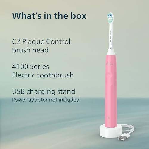 Philips Sonicare 4100 Series Electric Toothbrush - Sonic Toothbrush with Advanced Sonic Technology, Pressure Sensor, Two Intensity Settings, Smartimer & Quadpacer, Deep Pink, Model HX3681/26