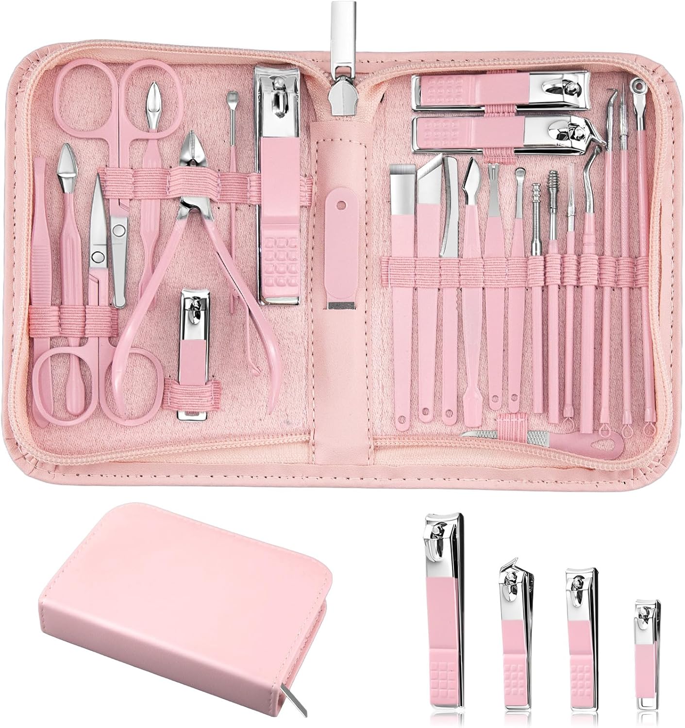 MINKINH Manicure Set Professional Nail Clipper Kit-26 Pieces Stainless Steel Manicure Kit,Nail Care Tools with Luxurious Travel Case (Brown)