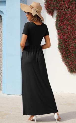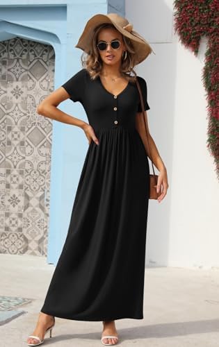 Fabric: 95% Rayon + 5% Spandex; casual maxi dresses for women selected stretch knitted fabric, cloud-like soft touch, can wrap your body well, close to wear will not itch, not tight, let your body breathe freely. No shrinkage, no color loss, no pilling. Comfortable and breathable, it is a close companion for your daily wear. Features: floor length maxi dress, very high length. Stretchy high waist, can well wrap and highlight your slim waist. The V neck can show your beautiful neckline and sexy collarbone.Buttons for embellishment, adding interest and making you look more lovely. Short sleeves are easy to move around and more suitable for spring and summer. Double side pockets for your small daily necessities.Such exquisite temperament goodies are your daily travel wear casual casual first choice. Size: Standard US size, you can buy according to your usual wearing habits. long dress US SIZE: S=(US 4-6), M=(US 8-10), L=(US 12-14), XL=(US 16-18), 2XL=(US 20). Fashion Tips: The classic and versatile basic maxi dress. It is easy to create a chic and casual street look with casual and fashionable shoes and bags. cold weather with a denim jacket or leather jacket is very cute. To attend parties, weddings, family events, dating and other important occasions, a pair of high heels, and then with necklaces, earrings and other accessories, delicate and timeless, as romantic and elegant. Easy Care: This dresses is easy to care for, and can be machine washed or dry cleaned. We recommend using a neutral detergent and avoiding bleach to maintain its quality.