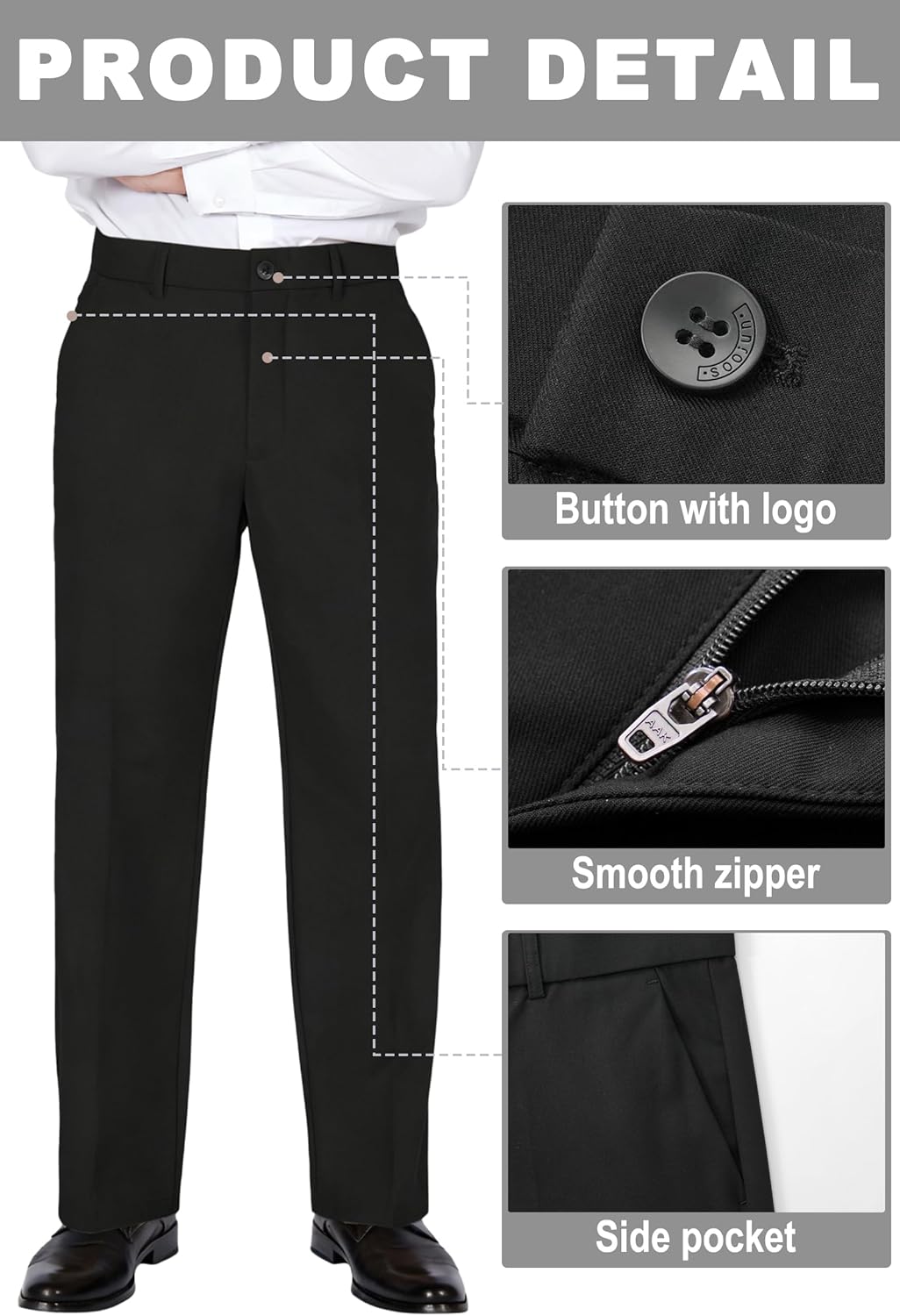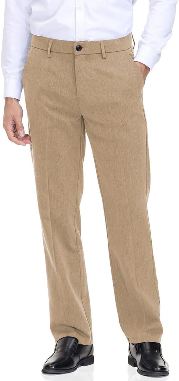 Soojun Men's Classic Fit Flex Waist Flat Front Dress Pant