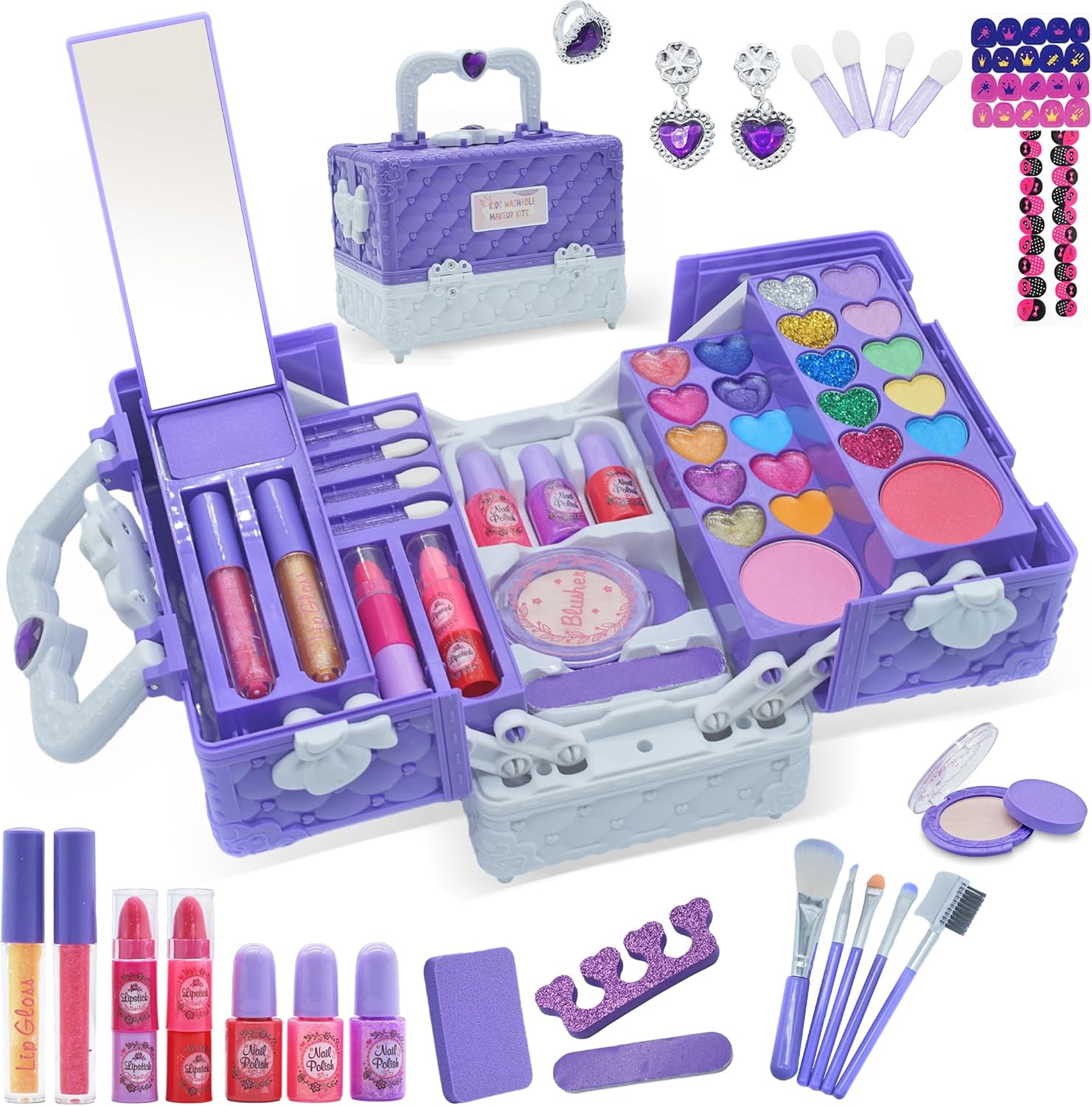 Kids Makeup Kit for Girl - 52 PCS Safe and Washable Makeup for Kids, Real Girls Makeup Kit, Toddler Makeup Kit with Cosmetic Case, Girls Toys Age 4-12, Princess Toys Birthday Gifts for Girls